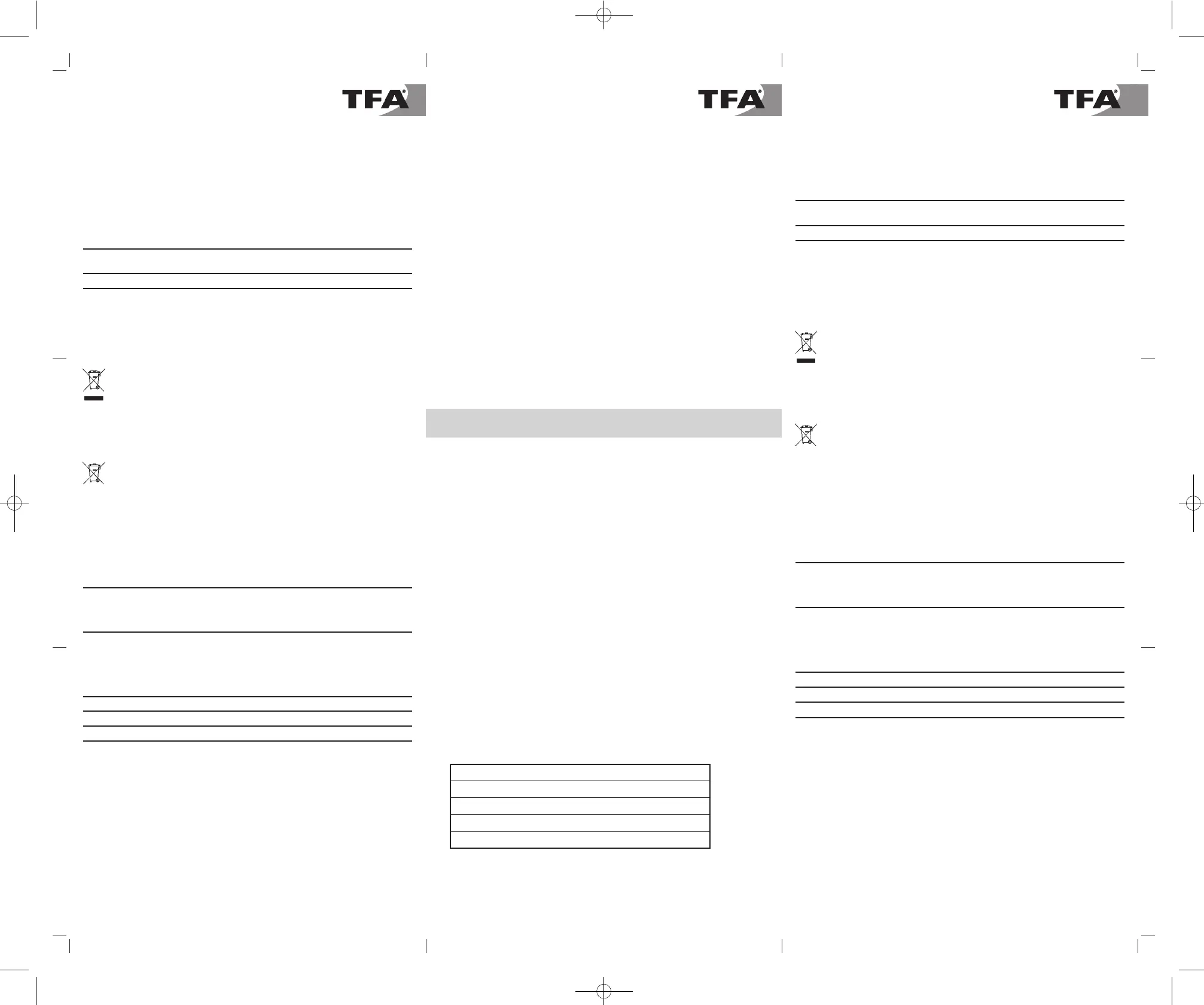 Deze gebruiksaanwijzing of gedeelten eruit mogen alleen met toestemming van TFA Dostmann worden gepubliceerd.