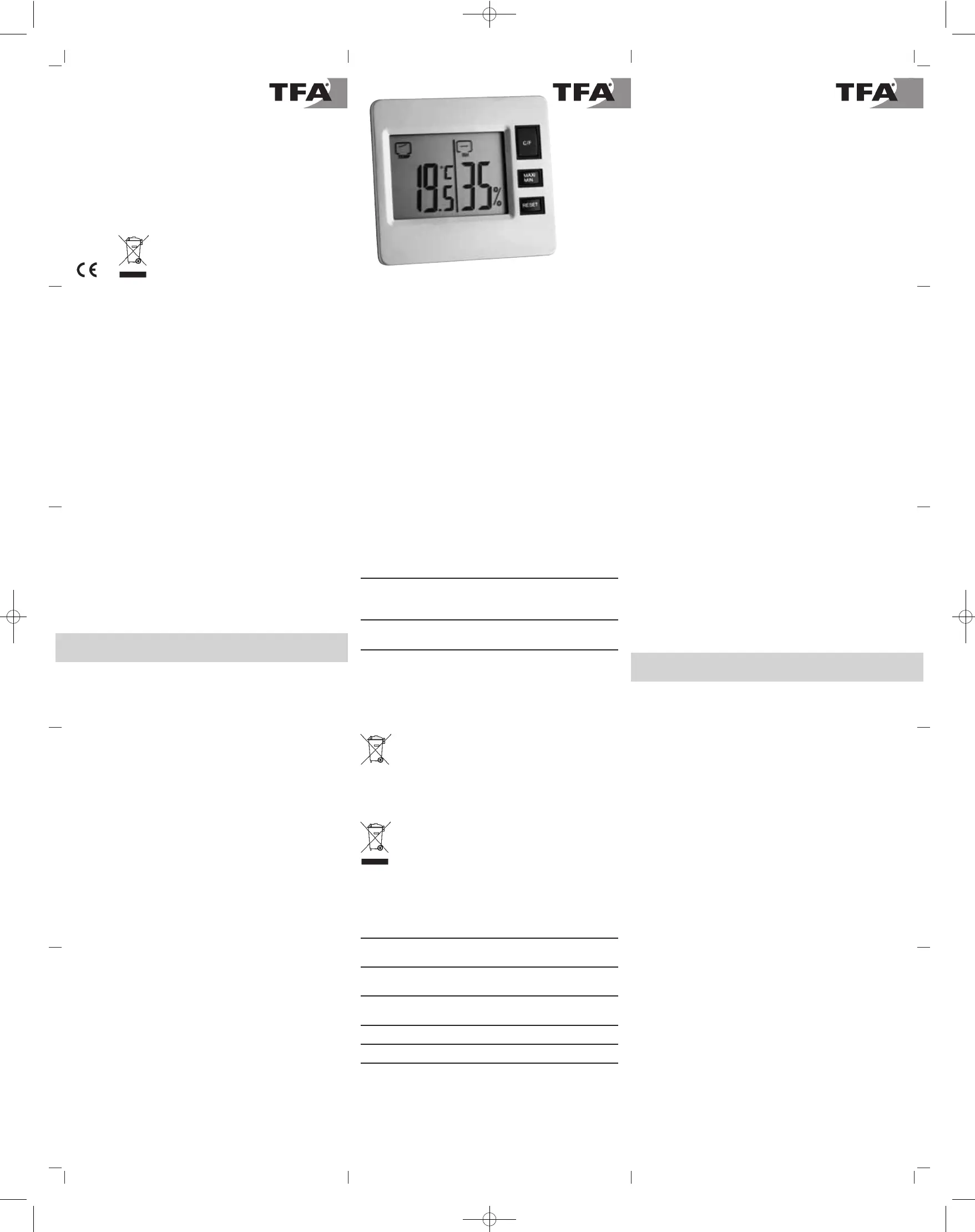 Hartelijk dank dat u voor dit apparaat van de firma TFA hebt