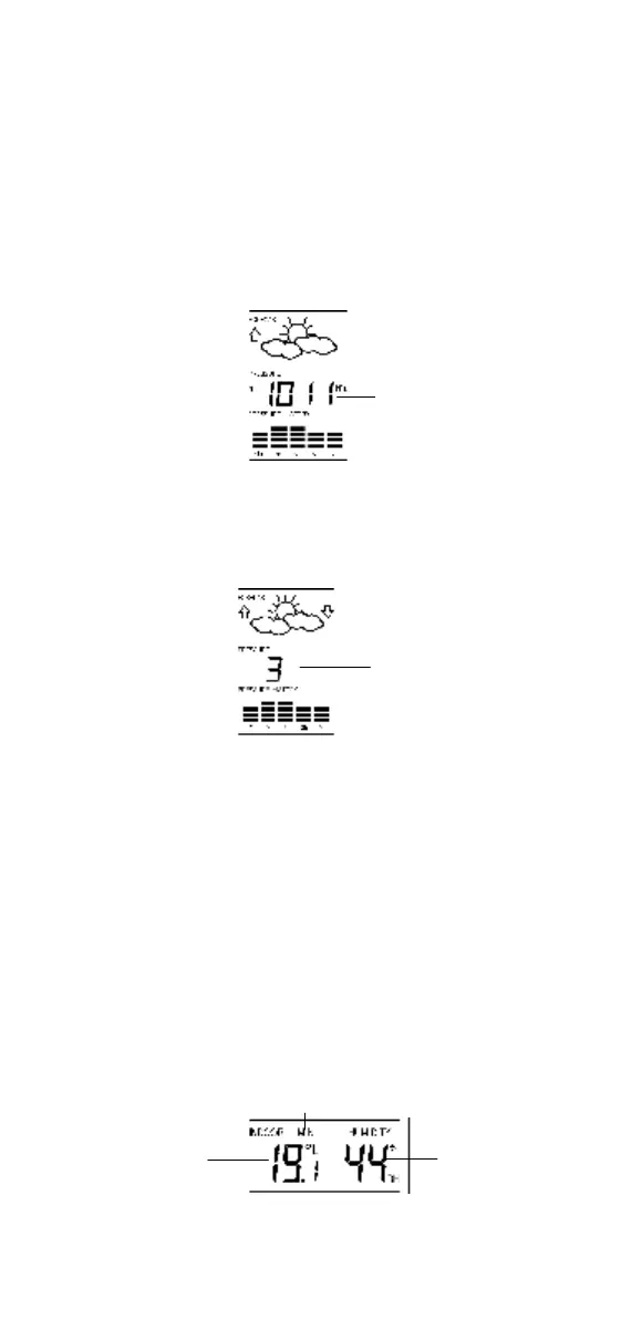 2. Use the OUT/+ key to set the weather sensitivity level. There are 3