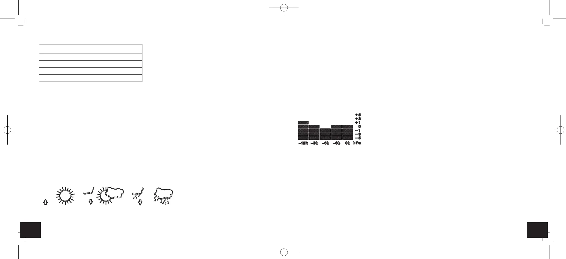 • Il display grafico mostra l'andamento della pressione atmosferica delle ore 12 trascorse.