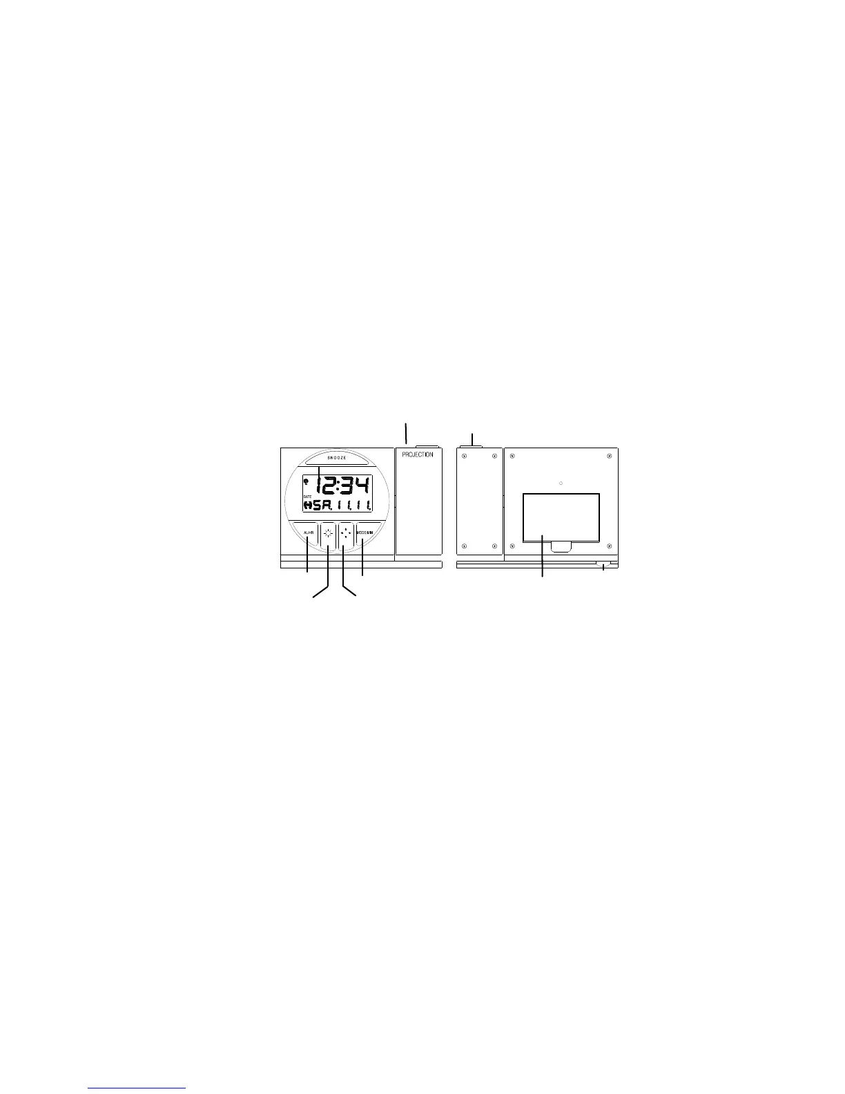 Le réveil projecteur peut fonctionner sur piles ou alimenté par l’adaptateur secteur 3.4V fourni avec