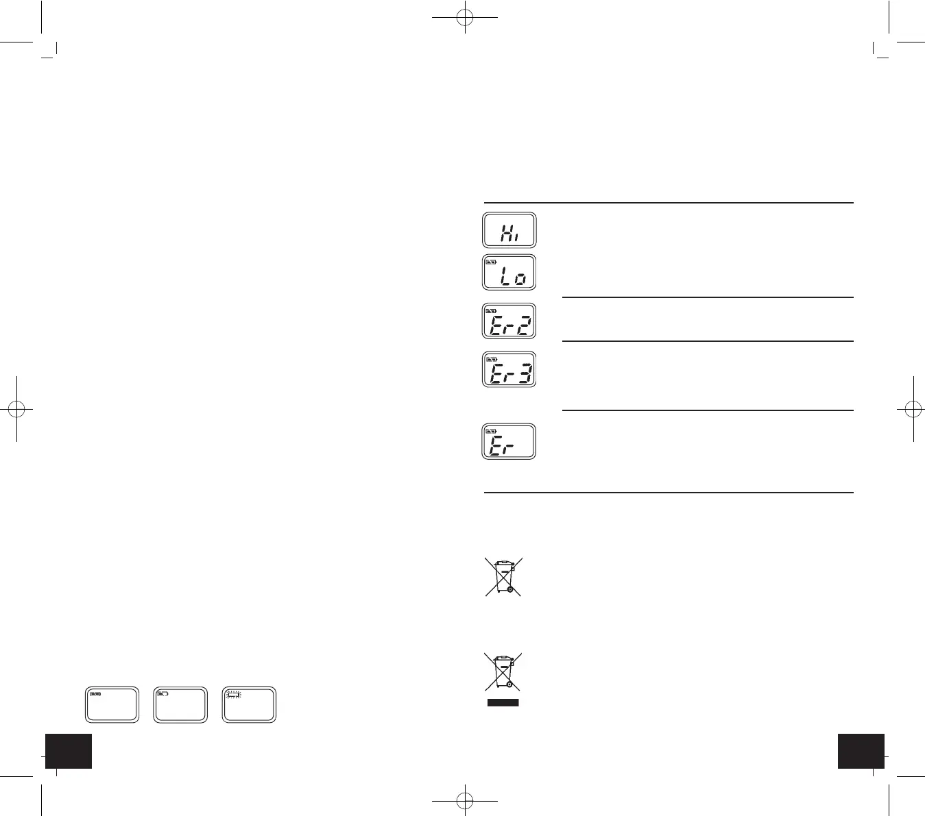 • Zodra het middelste of het rechter batterijsymbool op de display verschijnt a.u.b.