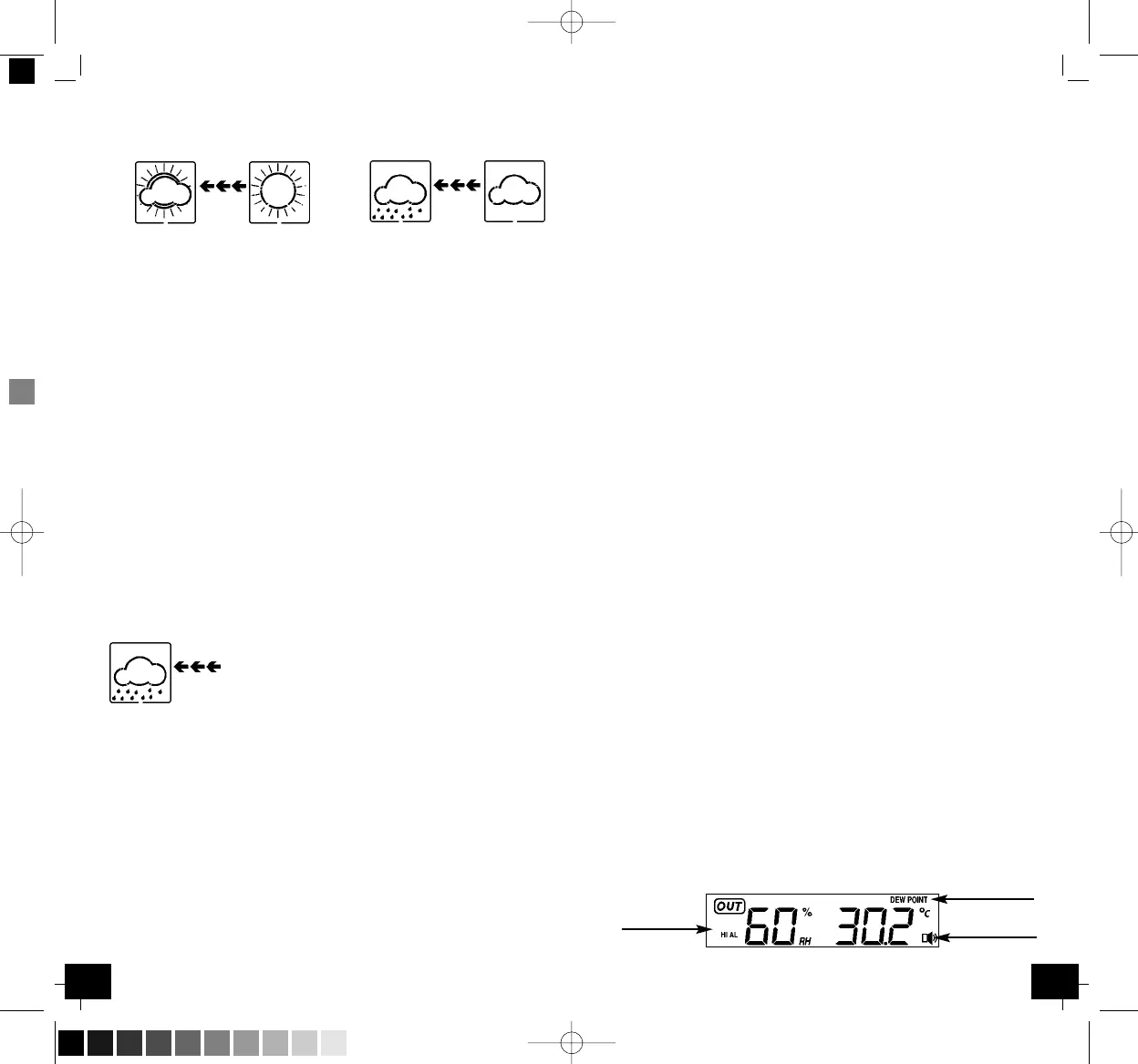 • Las flechas de tendencia meteorológica están situadas entre los