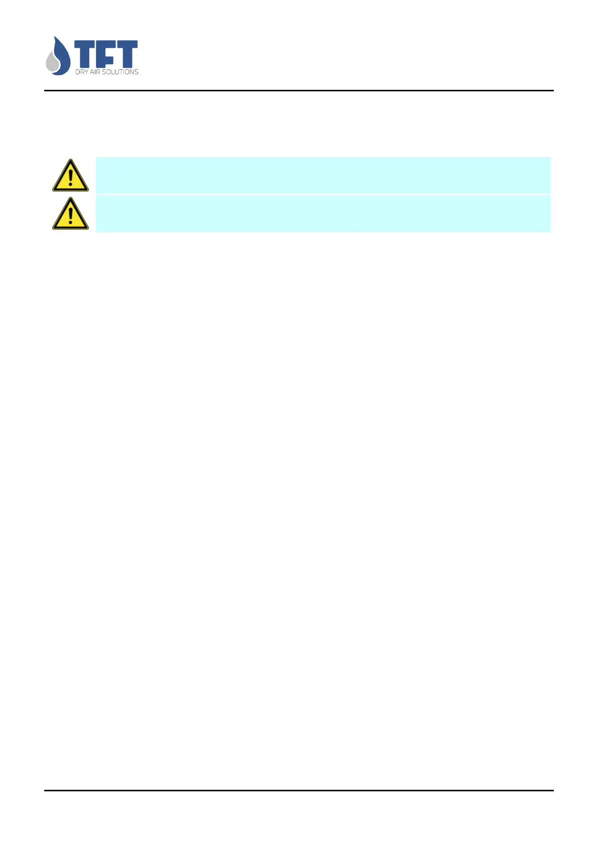 CAUTION! The installation and the first start-up of the unit must be TFT.