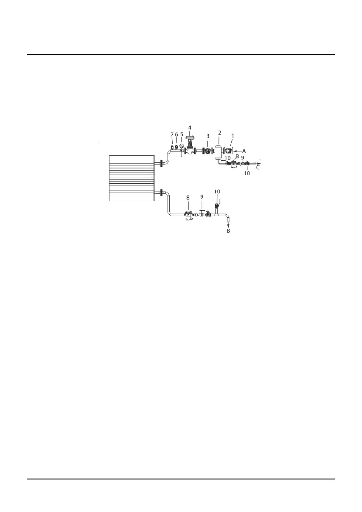A. Steam source - B. Dehumidifier return - C. Drain condensate return
