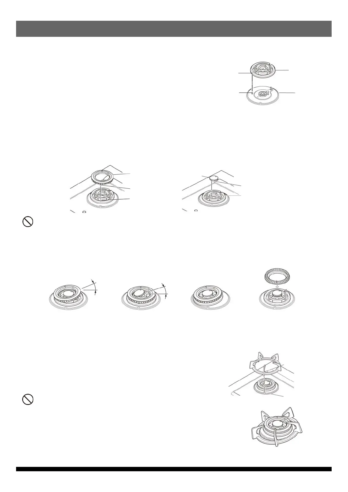 Place the outer ring burner caps and simmer burner caps on burner bodies without tilting.