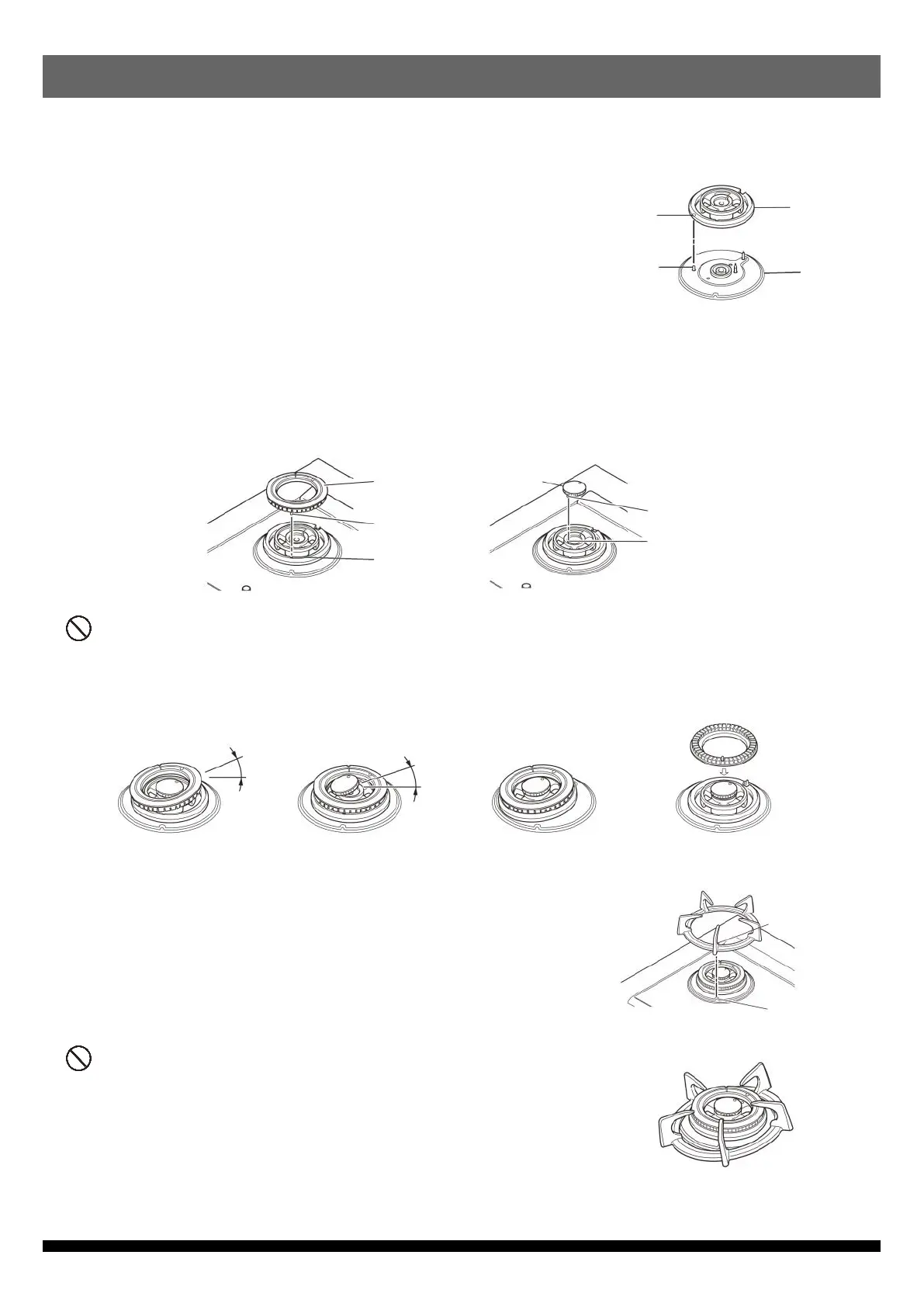 不要在爐頭蓋和爐頭身錯誤放置的情況下使用爐具。