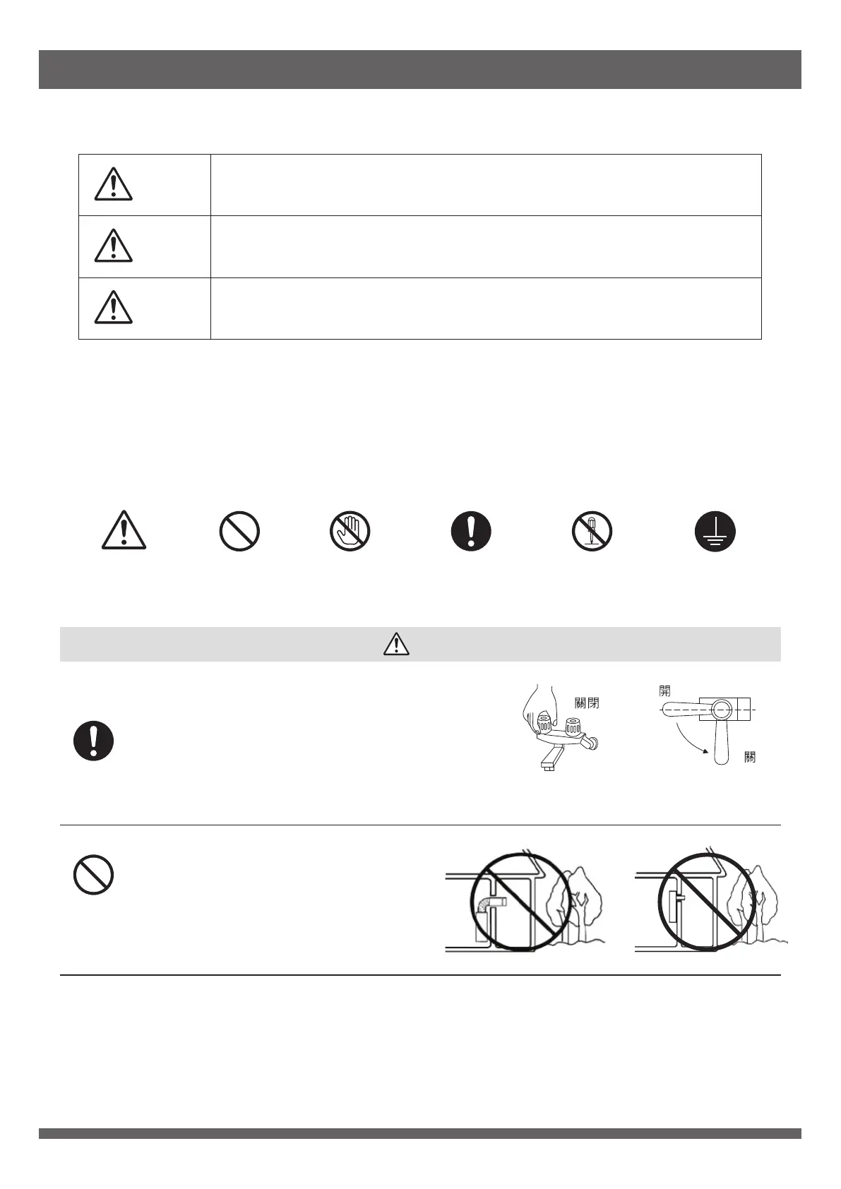 禁止 切勿觸摸 必須執行 切勿拆開 必須接到地線