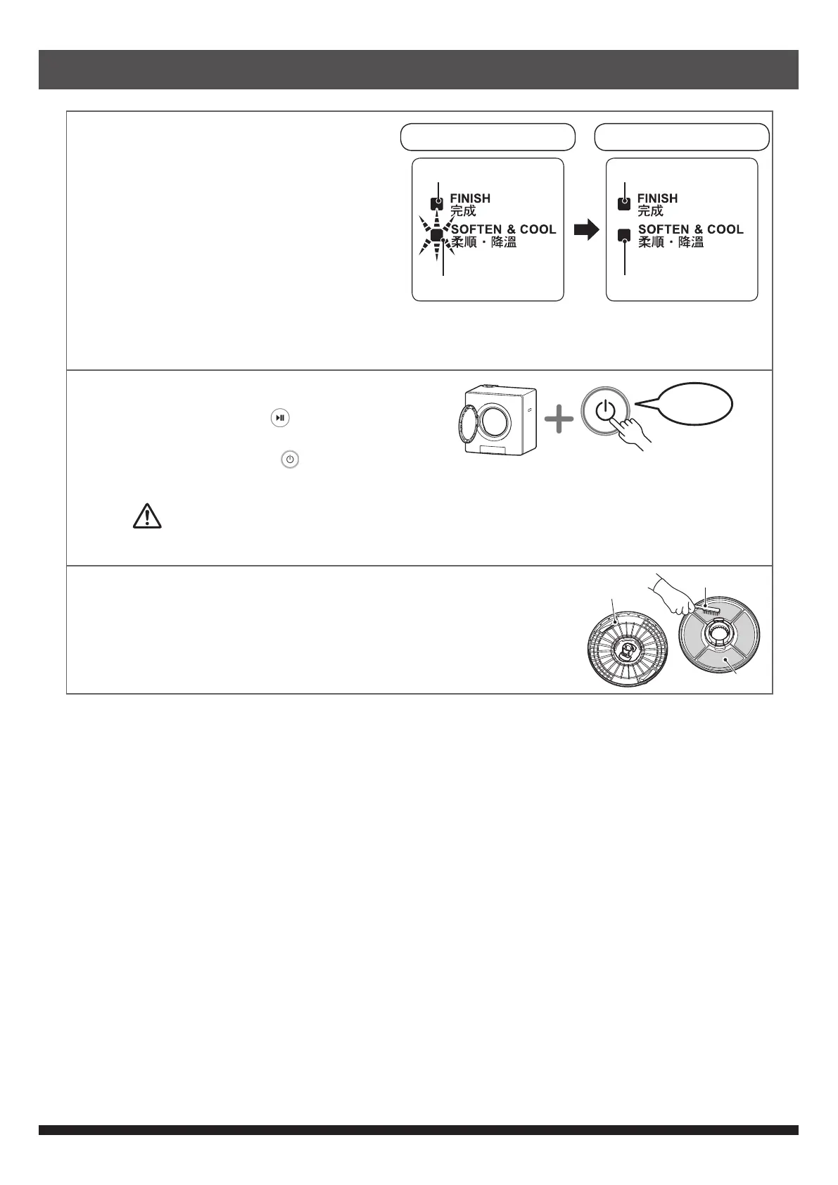 當停止了「柔順及降溫」模式後,請從乾衣機取出衣物,以免沾有油漬的衣物自燃。
