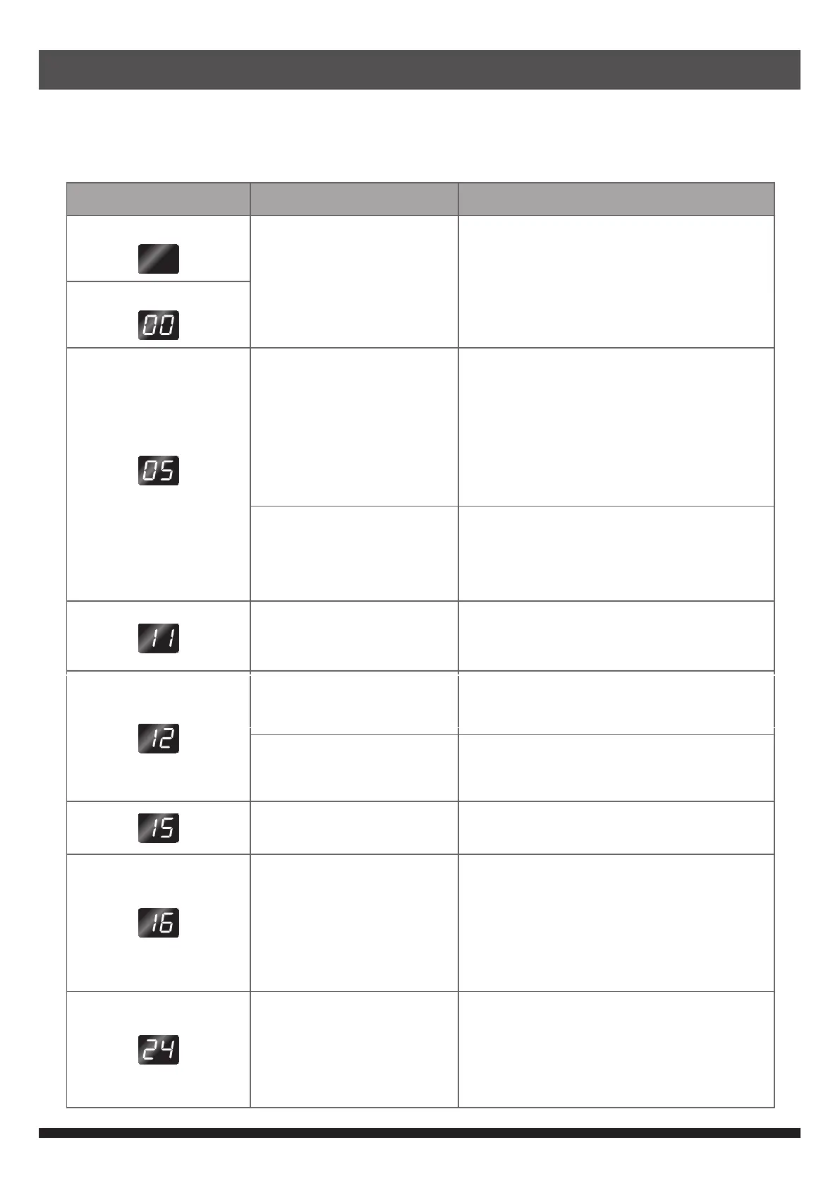 Error Code (blinking) Reason Remedial Measure