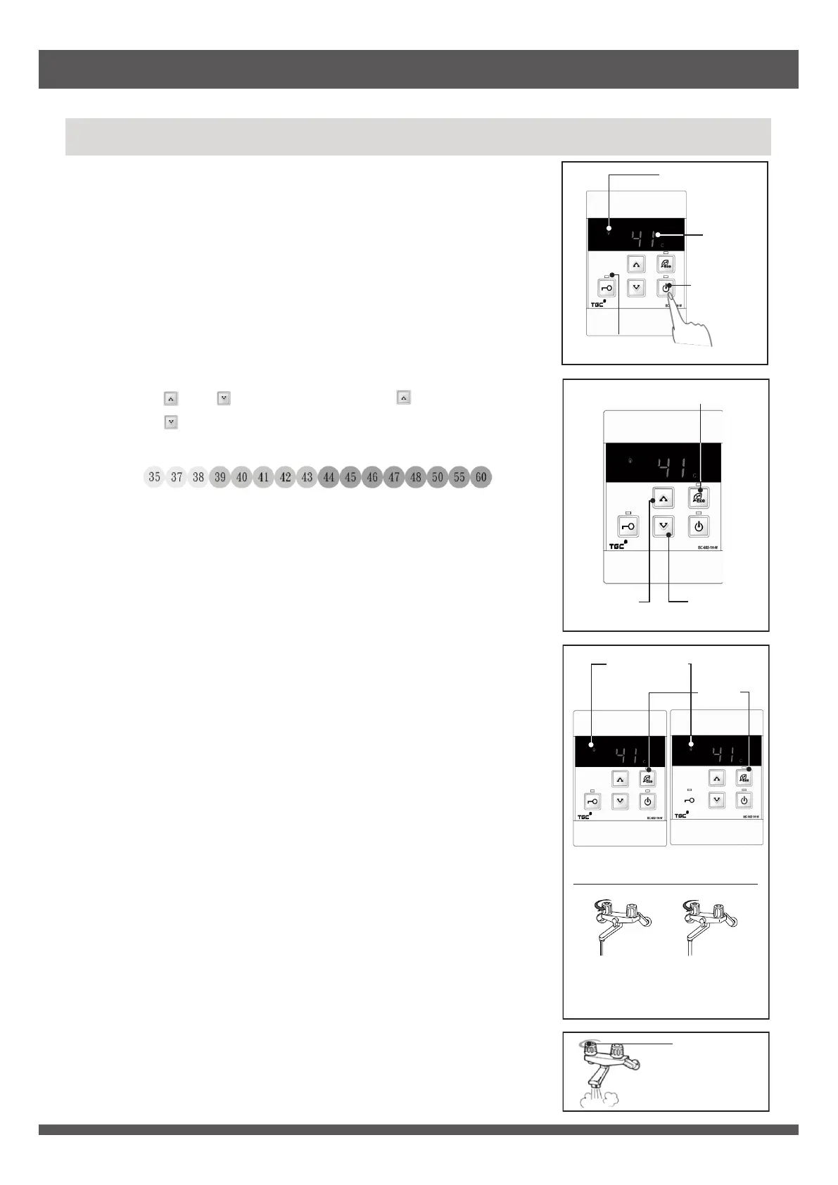 以「 」按鈕調低熱水水溫。熱水水溫可調節範圍為: