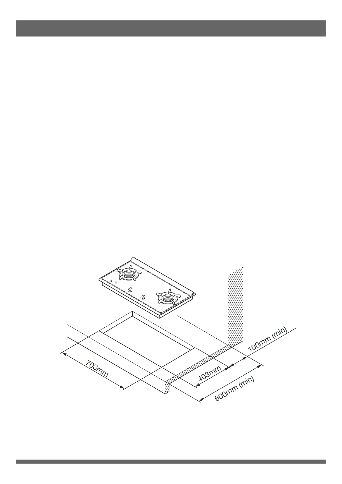 • Place the gas appliance on a stable and level bench top. Please refer to below figure for cut-out