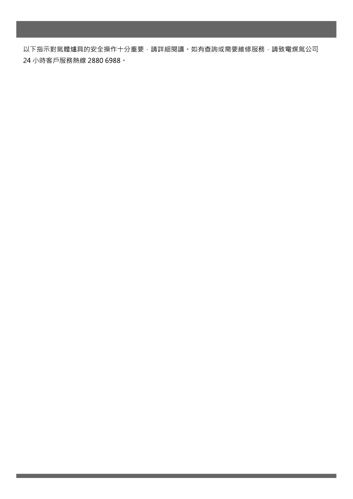 1. 當懷疑洩漏氣體時,將窗戶打開,以及關閉煤氣錶閥。切勿操作任何電器或電掣開關。切勿在現場使用任