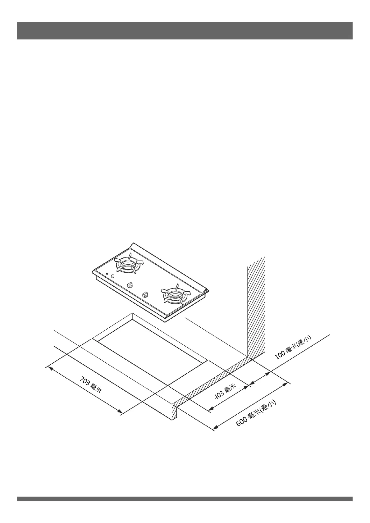 • 若在氣體爐具下安裝其它器具(例如 : 洗碗碟機、洗衣機), 請在氣體爐具下方保留最少 10 毫米距