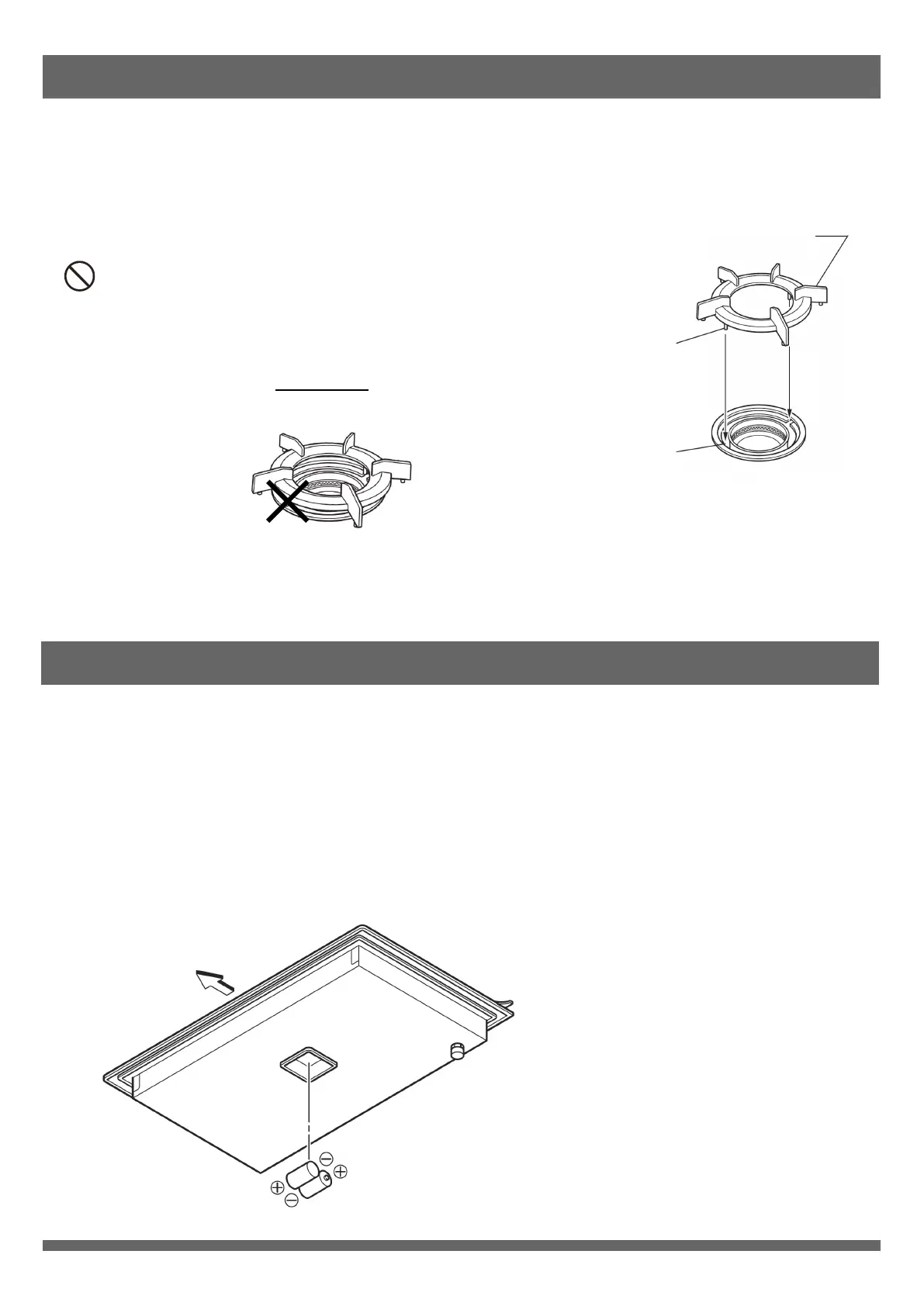 注意電池的電極方向,若電池擺放錯誤,爐具便不能操作。