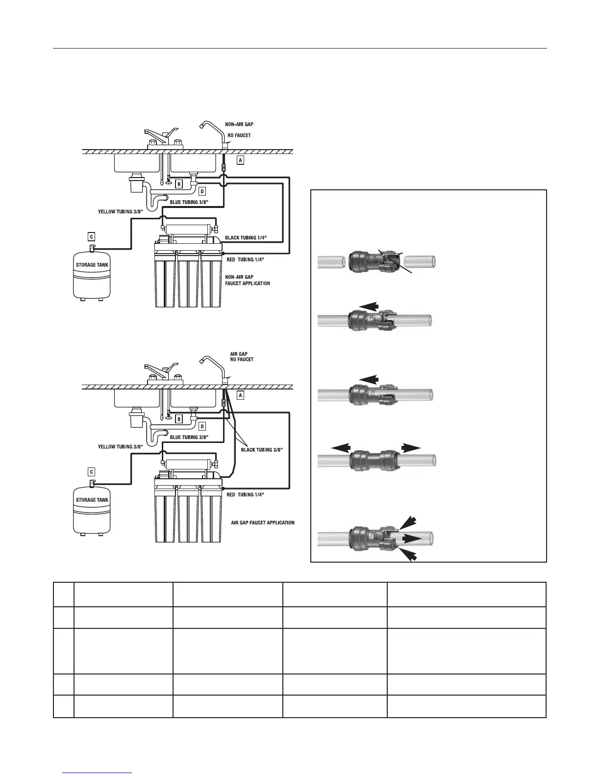 Please follow 4 color tubing diagram to complete installation