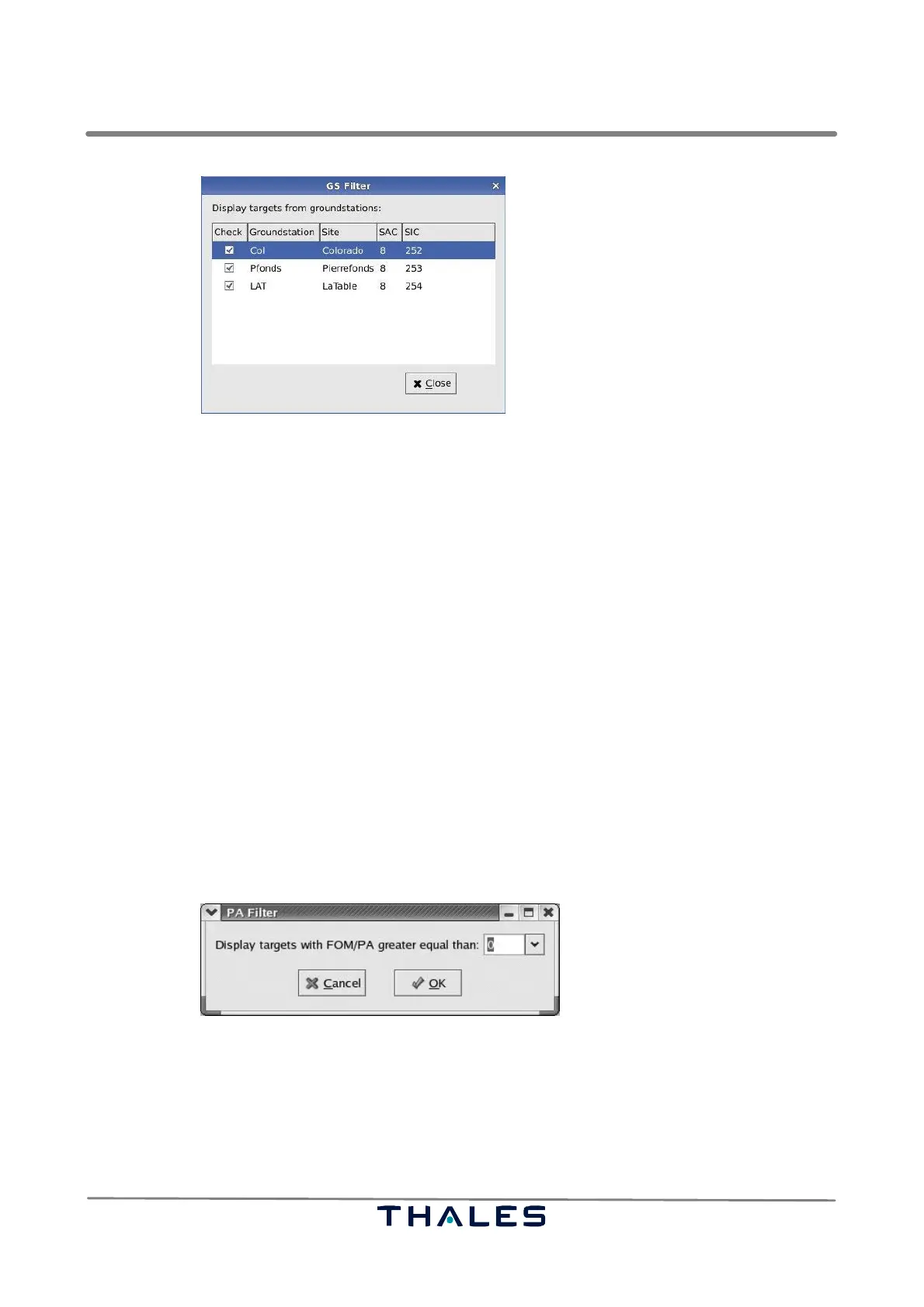 accept only targets arriving from the checked Ground Stations. Pushing the ’Close’ button closes the