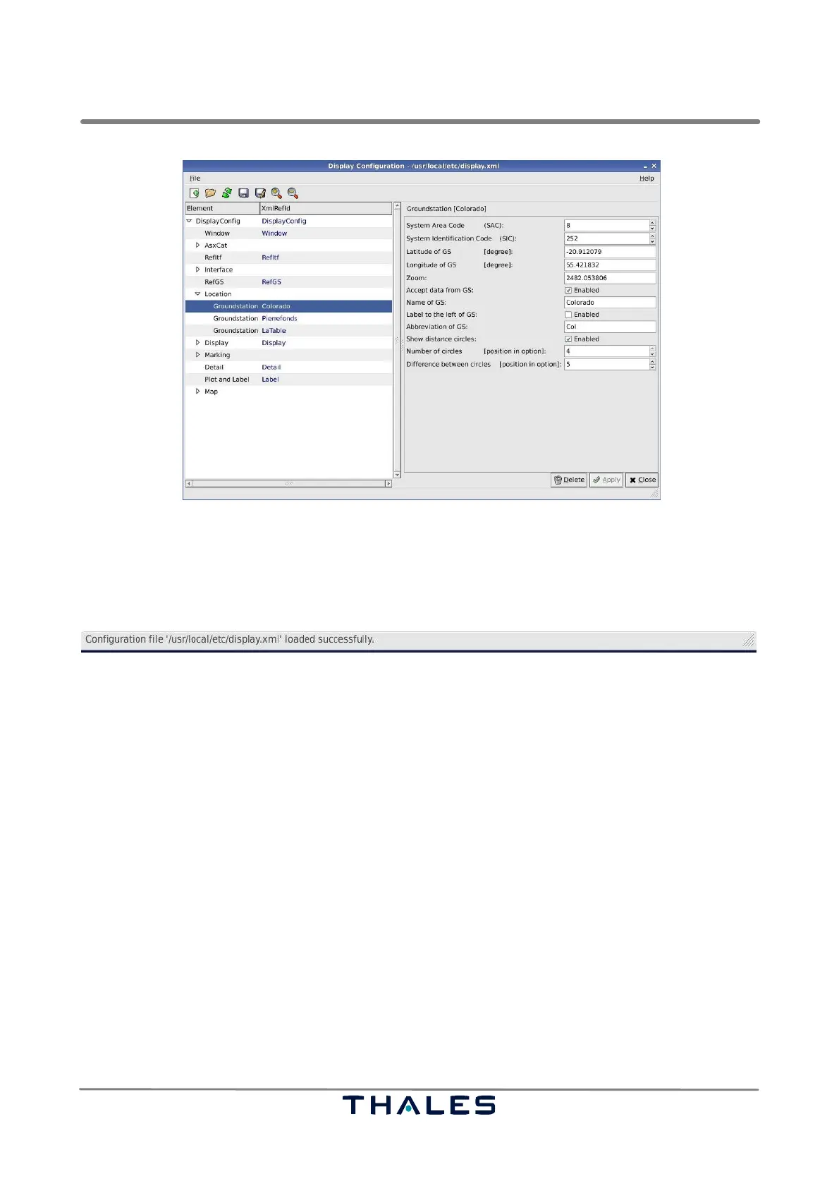 The statusbar, see Fig. 4−65, at the bottom of the Display Configuration tool shows currently per-