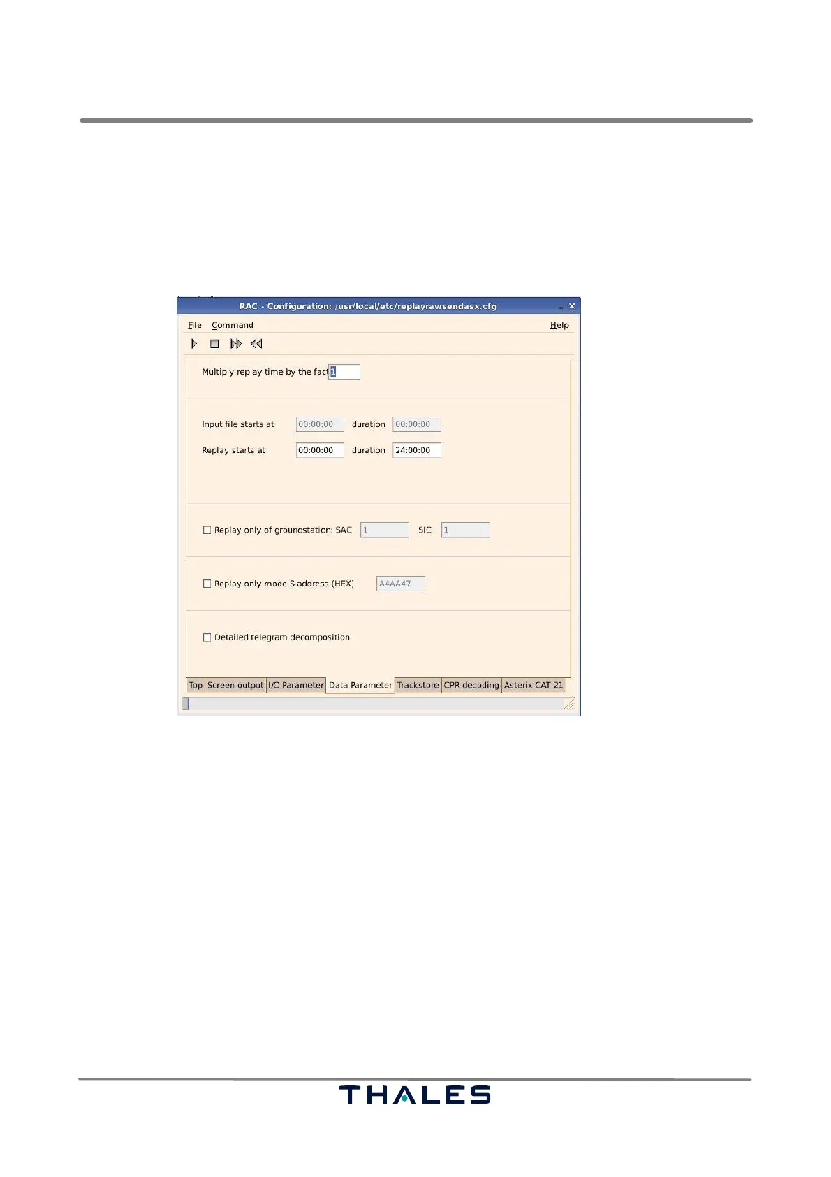 The notebook page ’Data Parameter’ (see Fig. 4−101) of the tool ’Replay Raw Data Send Asterix