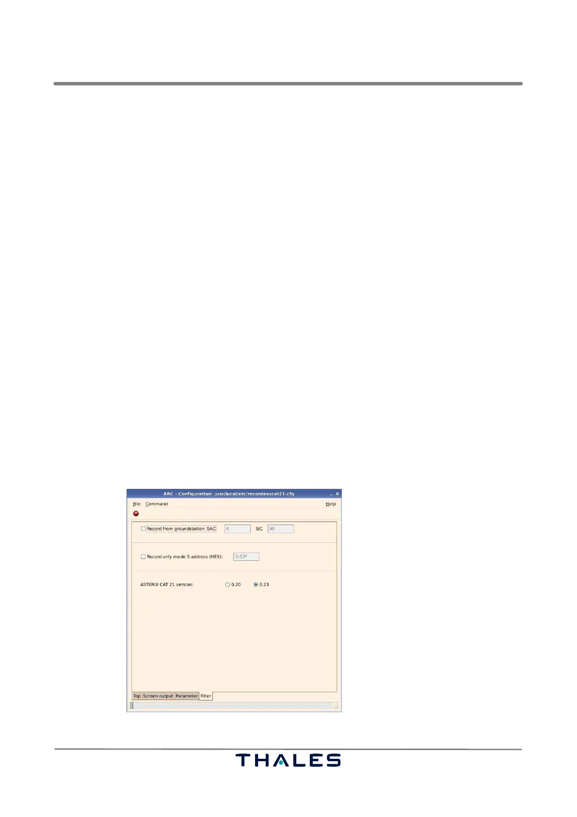 4.6.5.1 for a detailed description of the ASTERIX file logging format and the ’Screen Output’ ver-