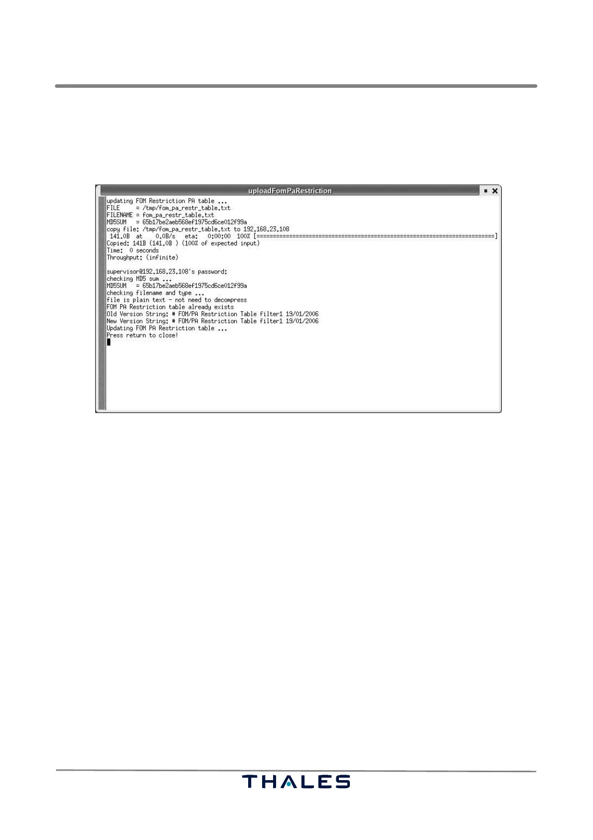 in section 5.4.13.5.1 . Fig. 5−25 shows an example of an ’uploadFomPaRestriction’ terminal window.