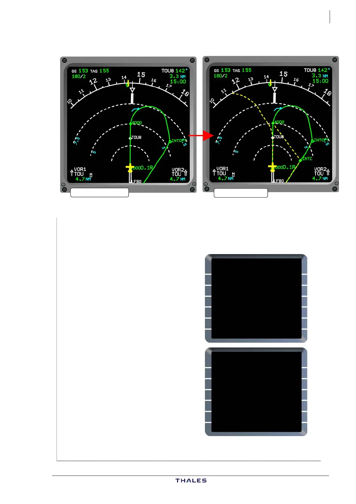 ND (NAV, ARC or PLAN mode) with a continuous yellow line.