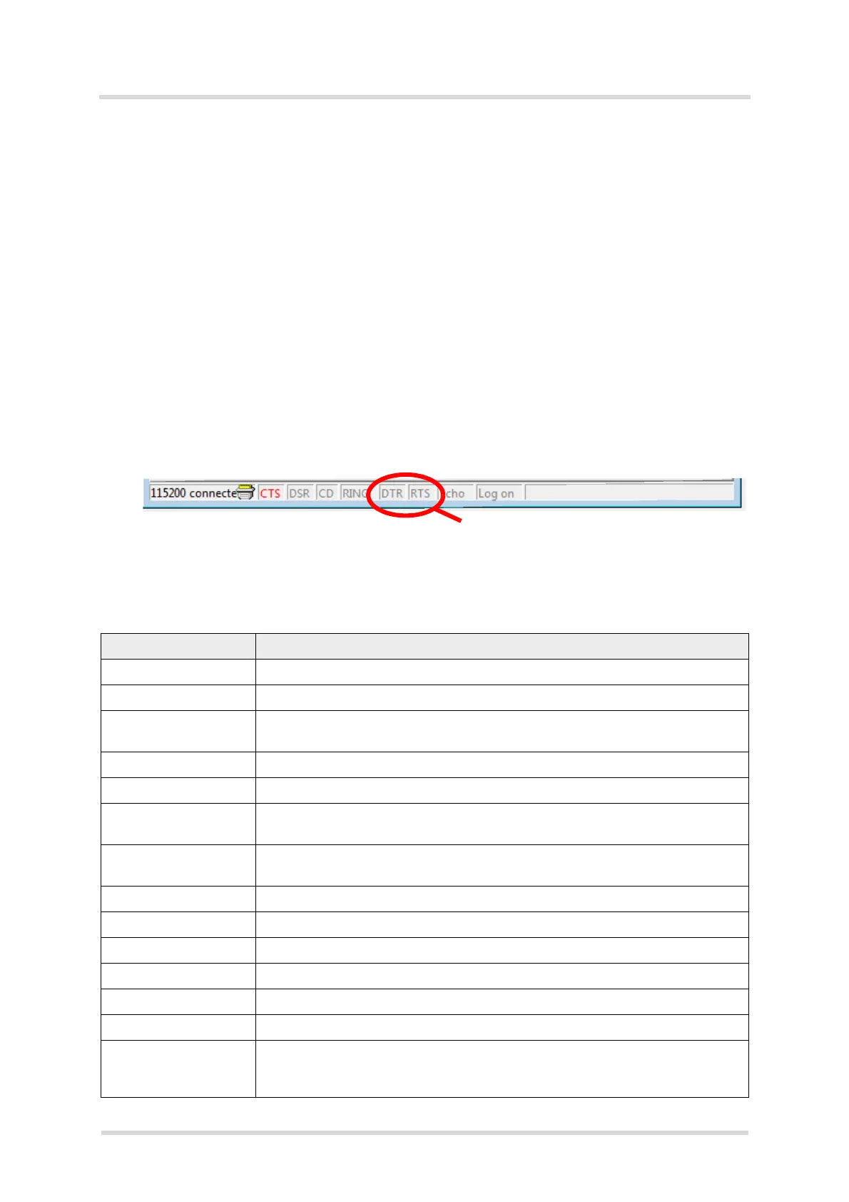 - Now, the RTS line must be reset to enable the Terminal mode, i.e. the RTS line has to
