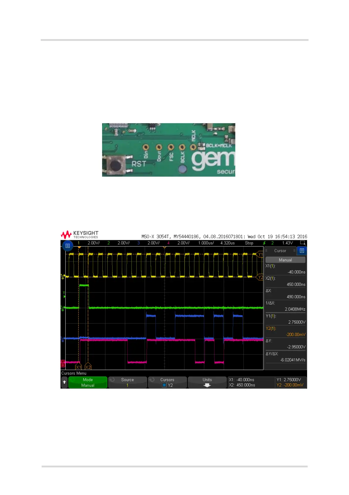 DAI signal timings as shown in Section 3.1.1.3 can be visualized using an oscilloscope. The