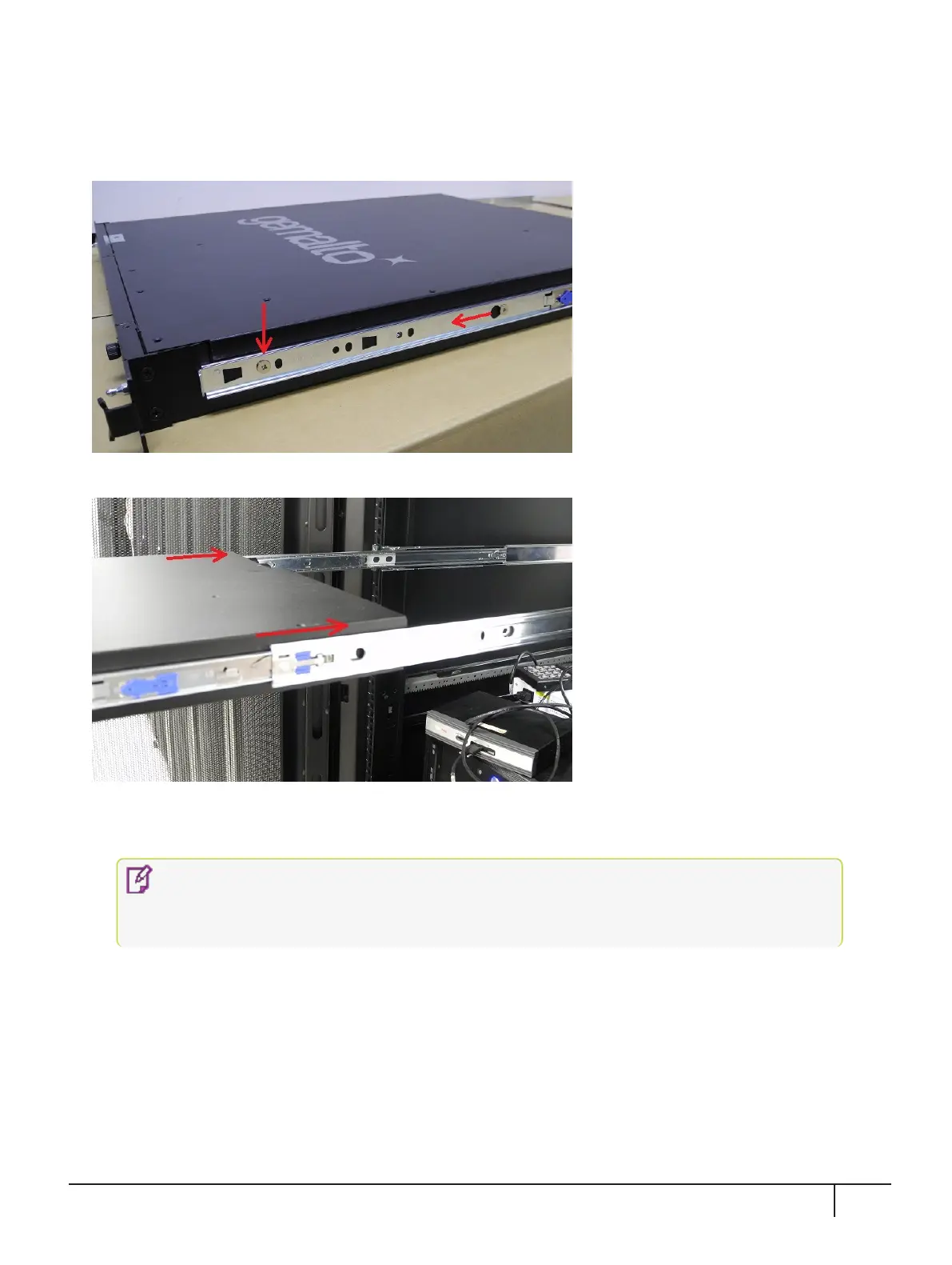 6. Fit the sliding rails onto the rack mounts until they lock into place.