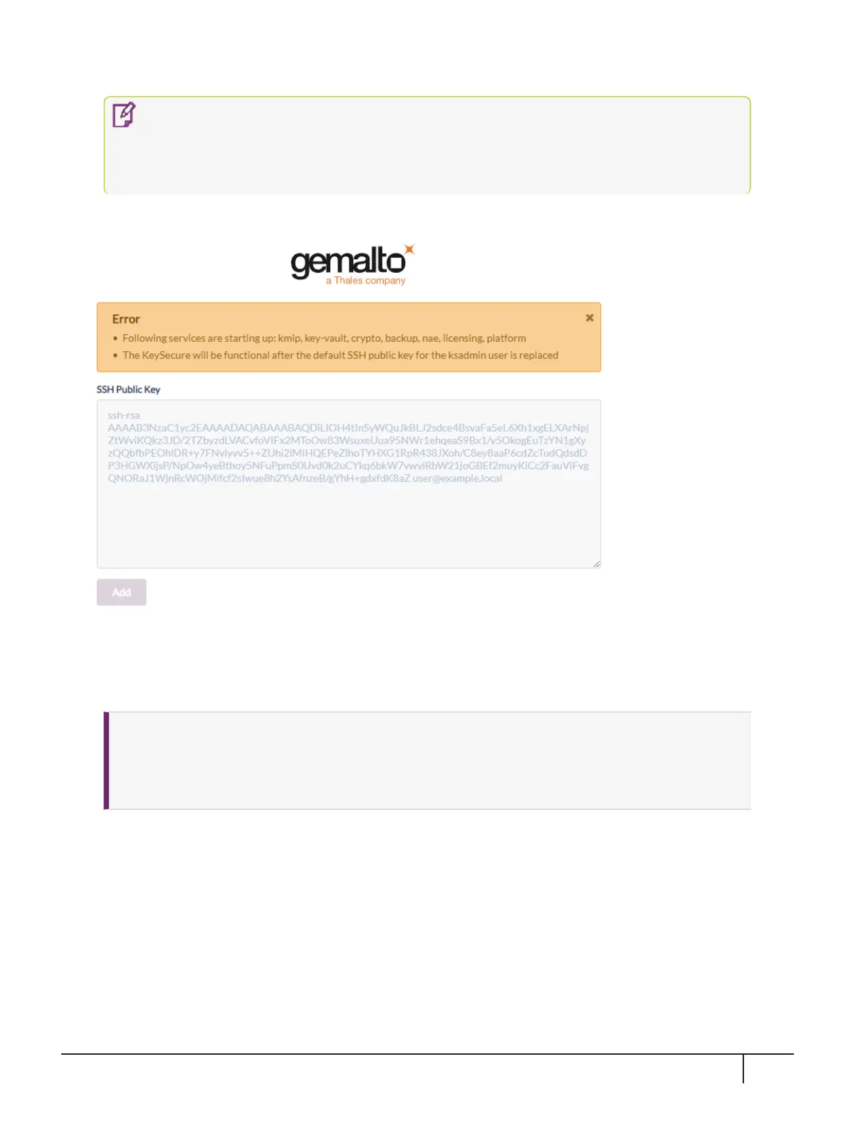 As the System Administrator (ksadmin), paste in your SSH Public Key in the box provided and then select