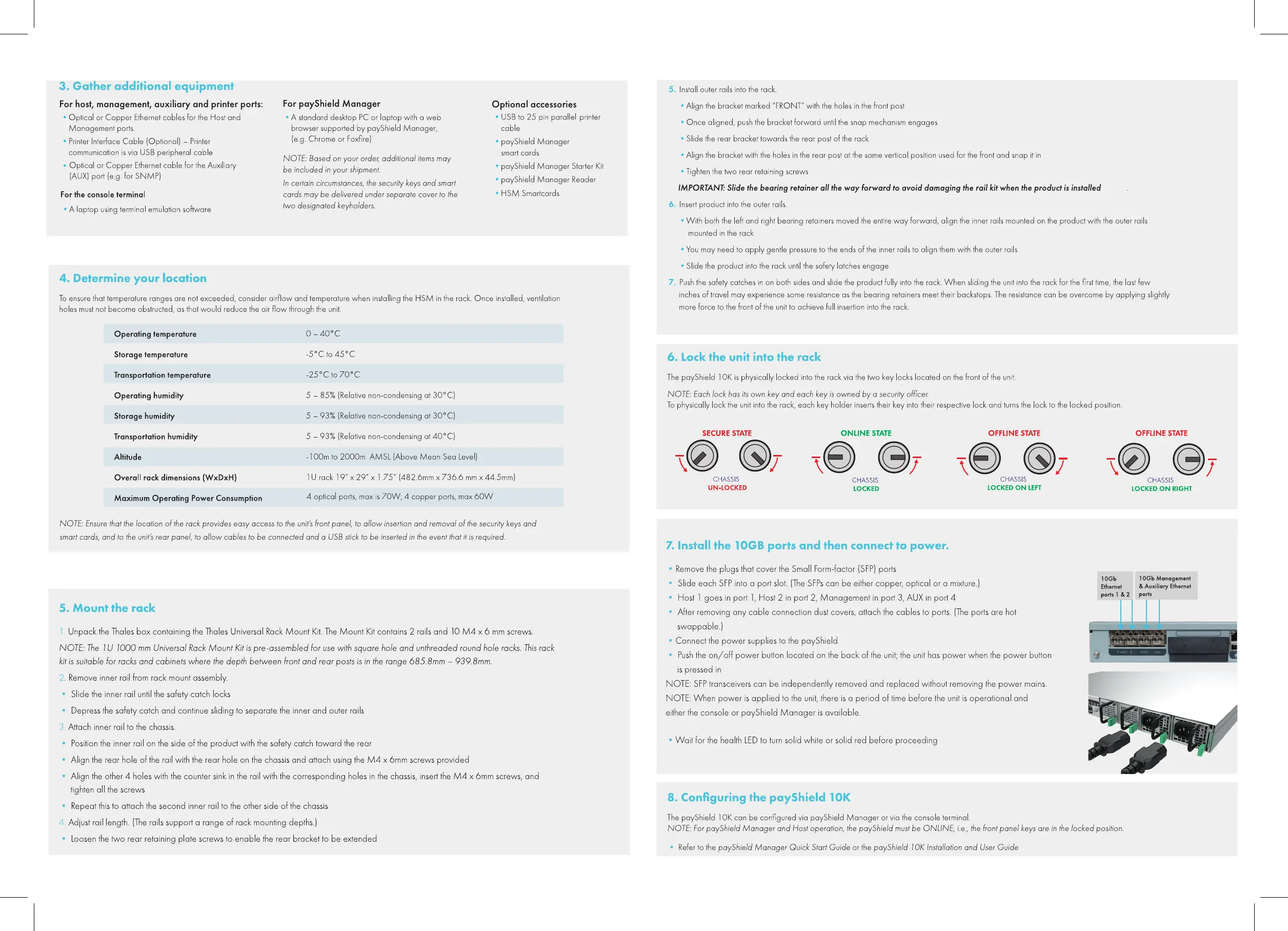 Thales payShield 10K PS10-D - Gather additional equipment; Determine your location; Mount the rack; Lock the unit into the rack