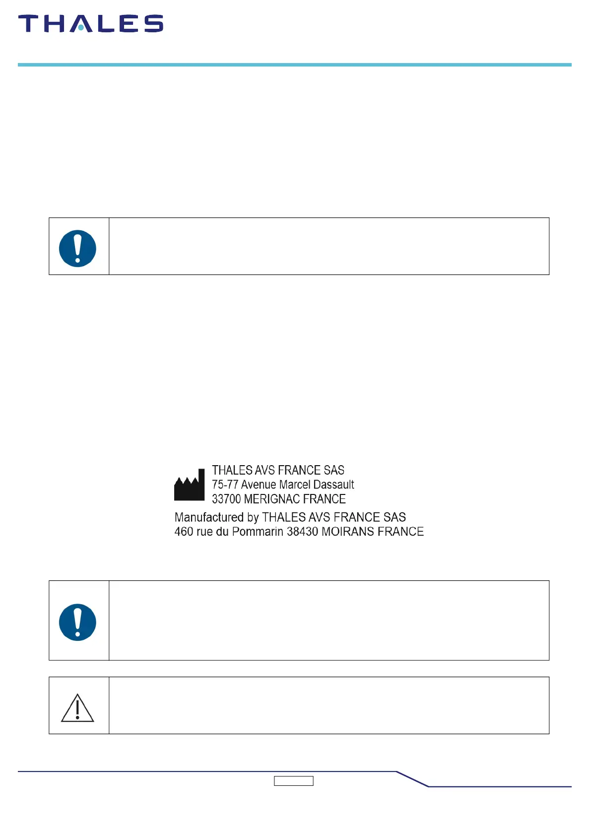 This document may not be reproduced, modified, adapted, published, translated, in any way, in whole or in part, or disclosed to a third party without the prior written consent of THALES.