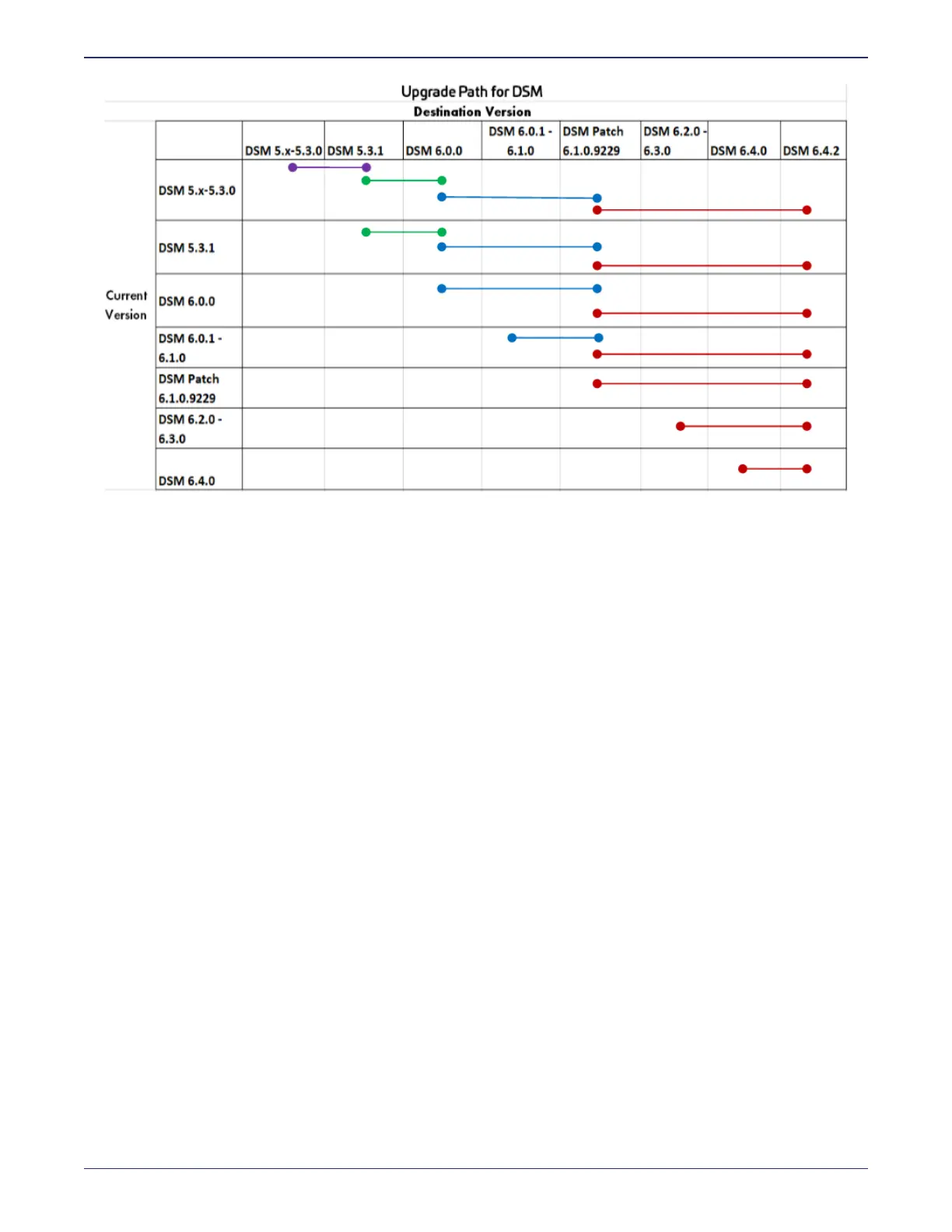Perform a backup before performing the migration. See "Backup current DSM configuration" on the facing page for