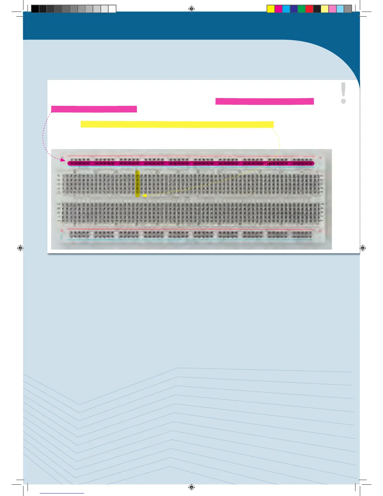 The breadboard gives you an easy way to assemble electronic circuits. The outer red- and blue-marked rows are