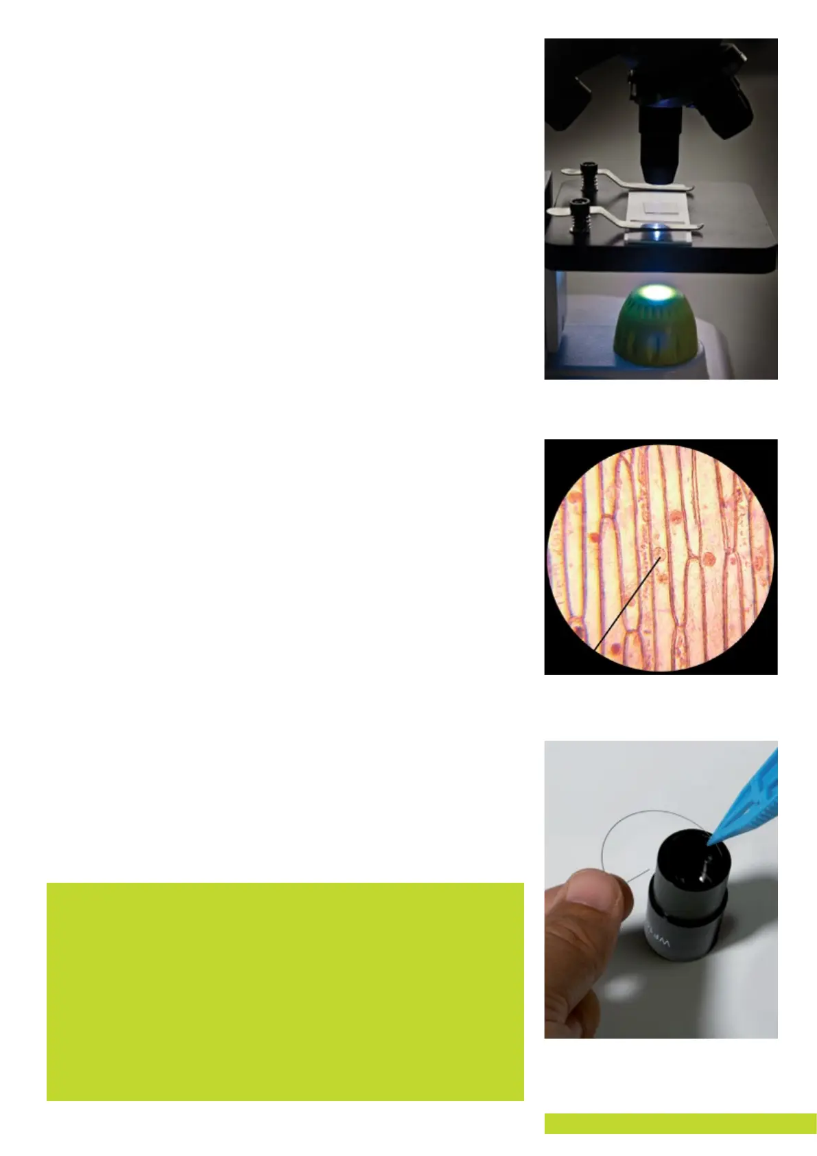 and then work up to the yellow (10x) and then to blue objective (40x). Many ob-