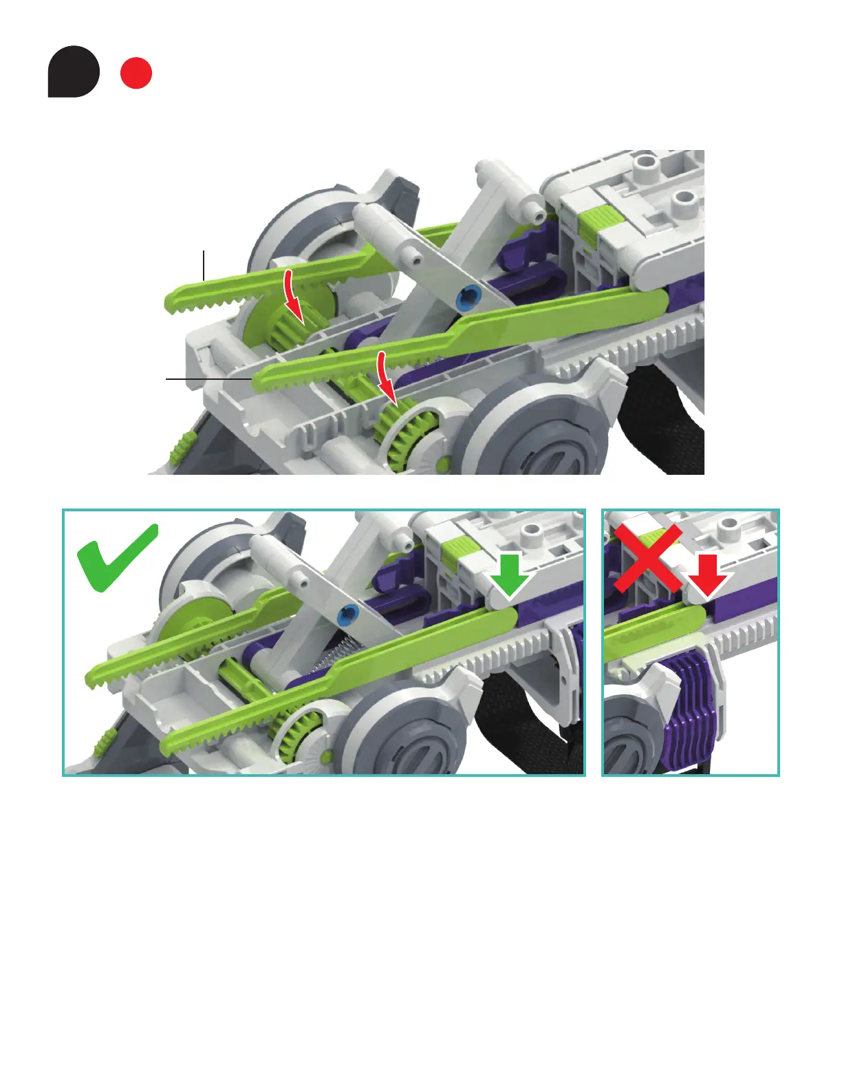 3. Then place the tracks down so that their teeth mesh with the gears below.