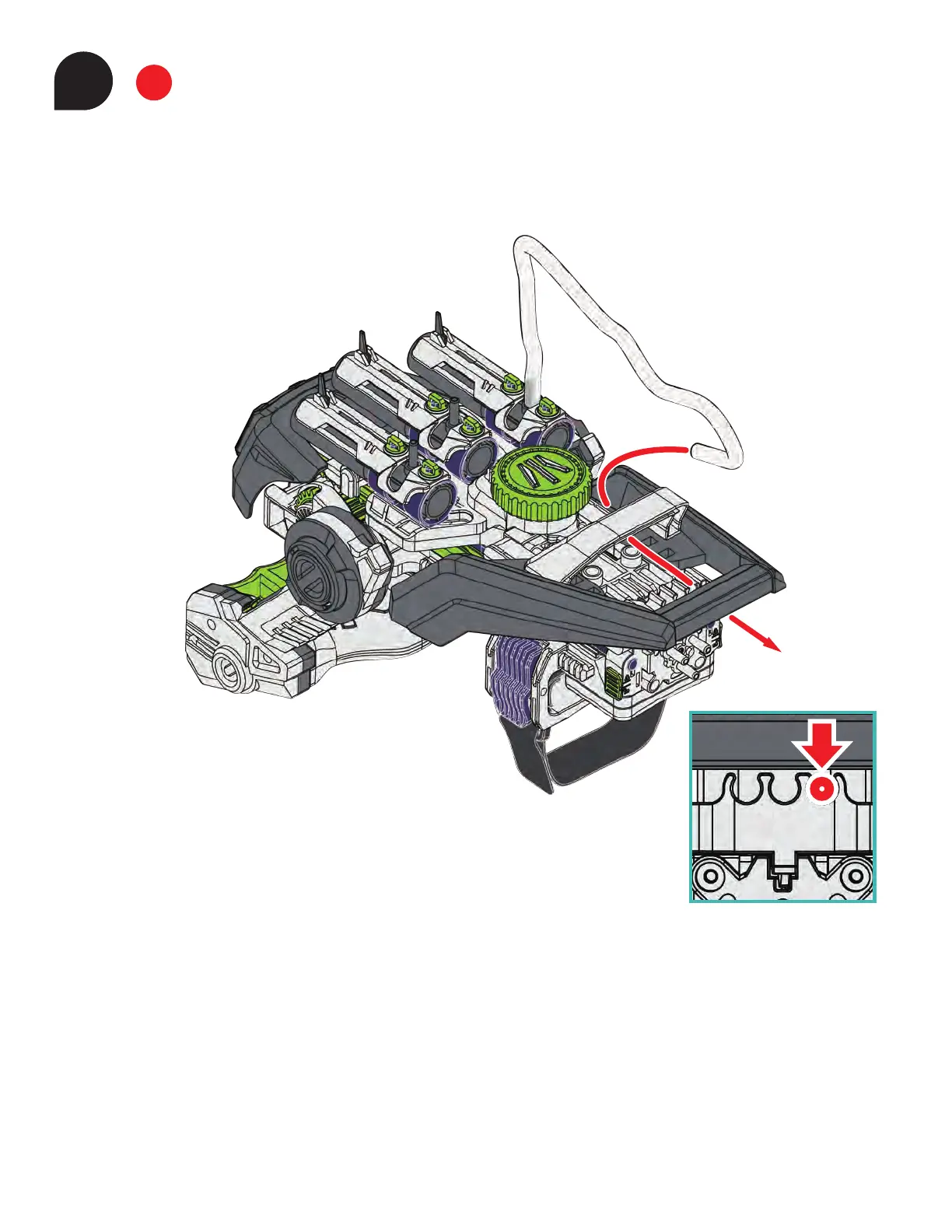 2. Clip the tube into the right most clip.