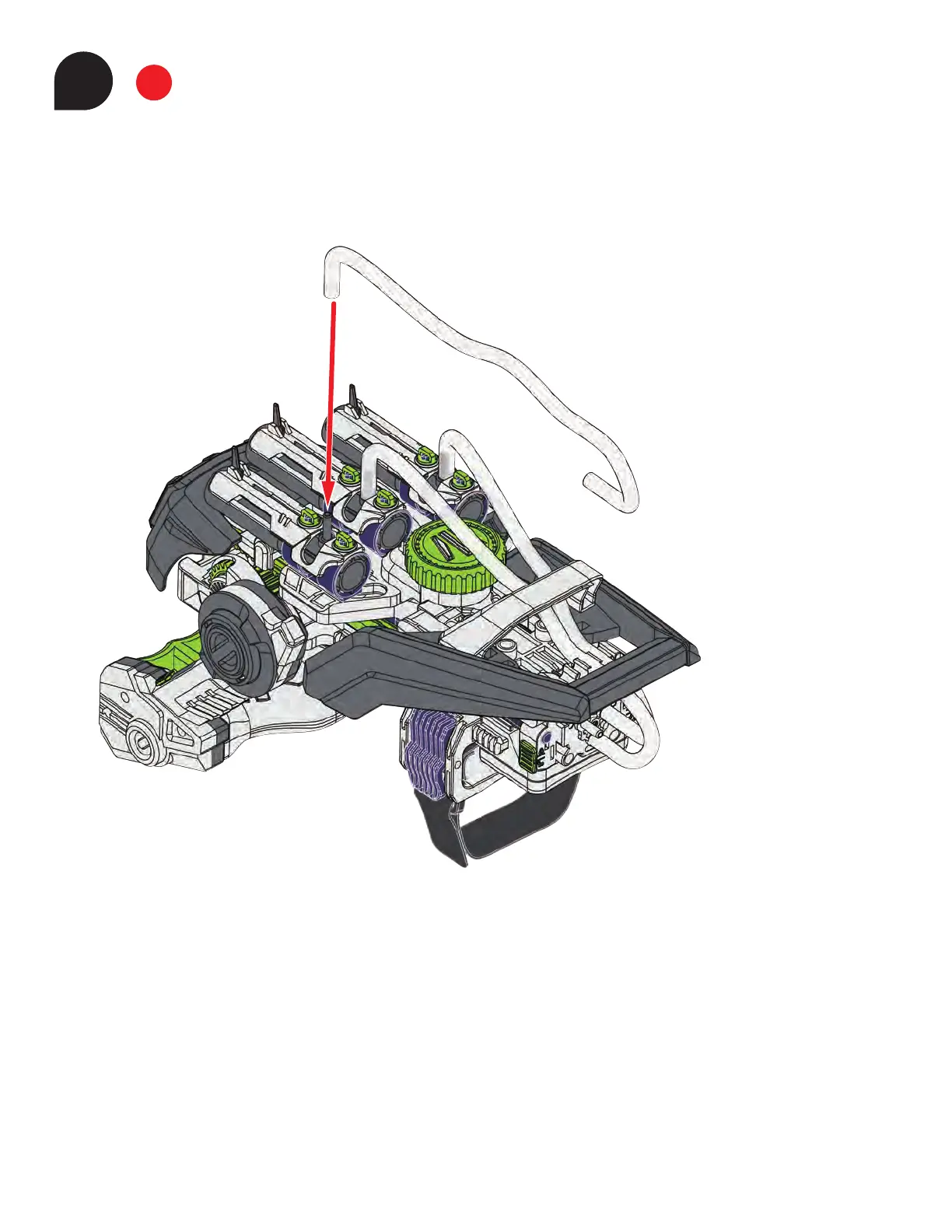 1. Place one end of the other 25-cm tube on the left-most nozzle.