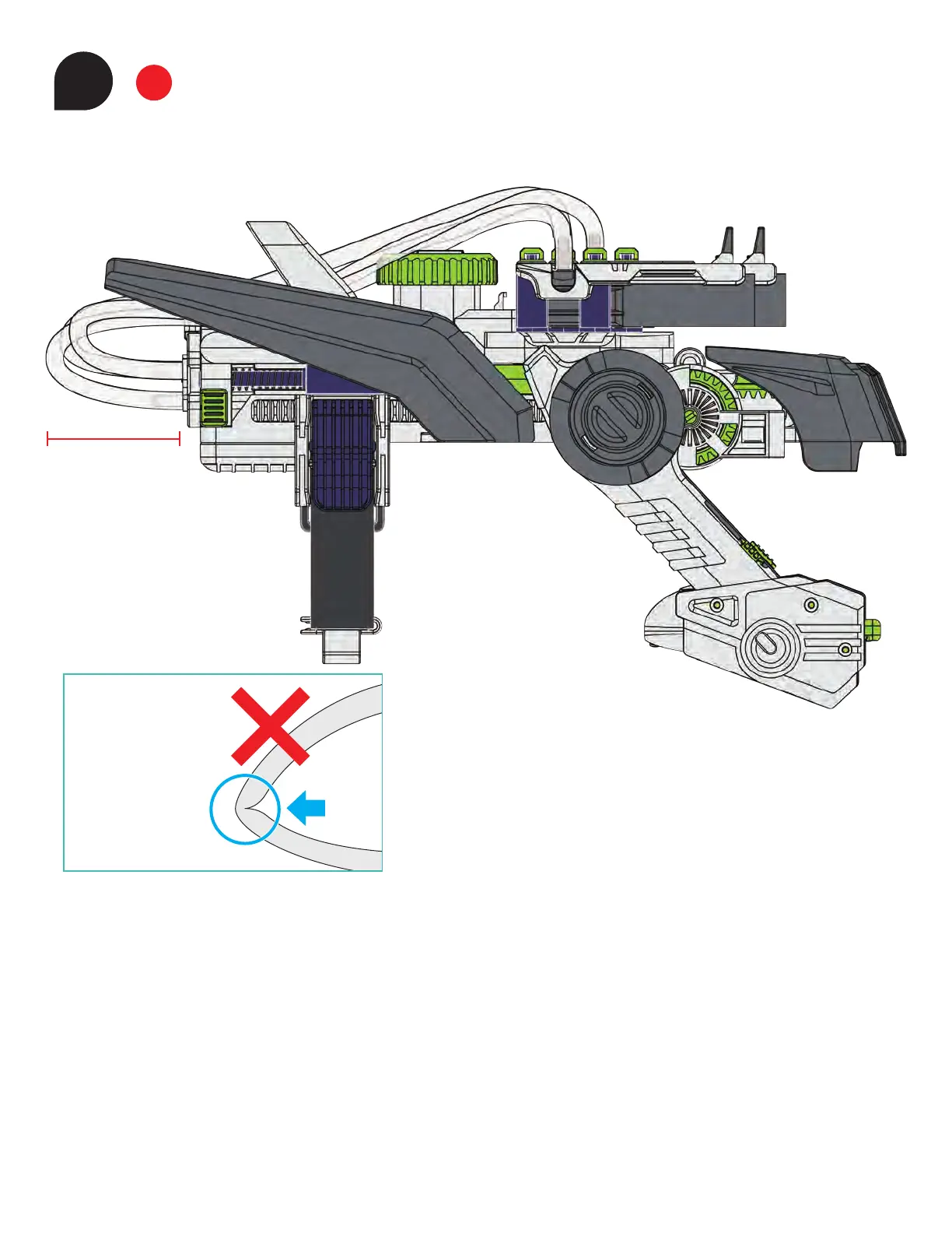 1. Place one end of the other 25-cm tube on the left-most nozzle.