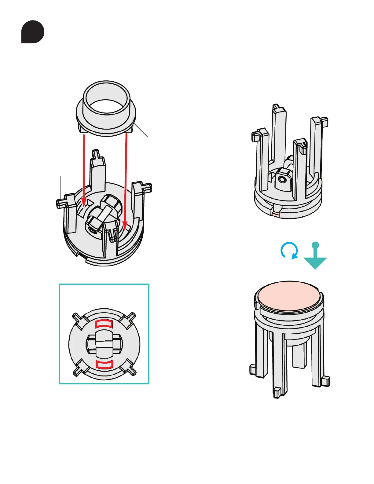 The two tabs of A13 fit into the slots of A15.