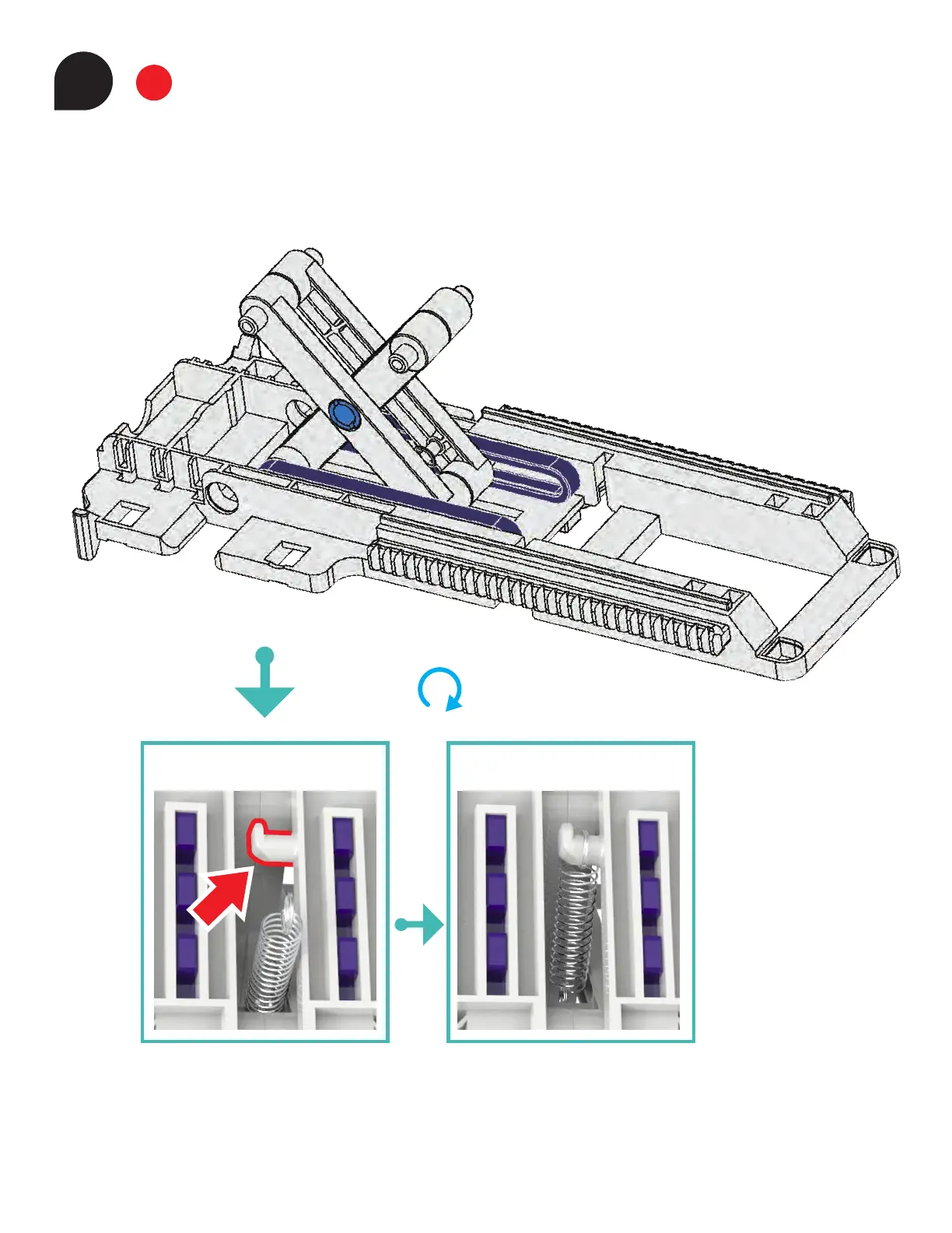3. Place the other loop of the spring (B8) over the hook on the bottom of A9.