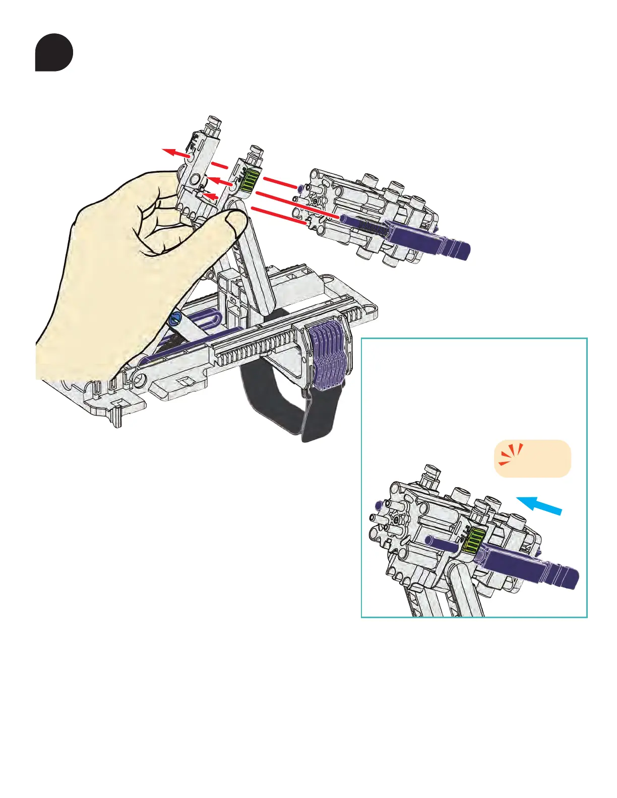 Hold the assembly in your hand while you place subassembly F.