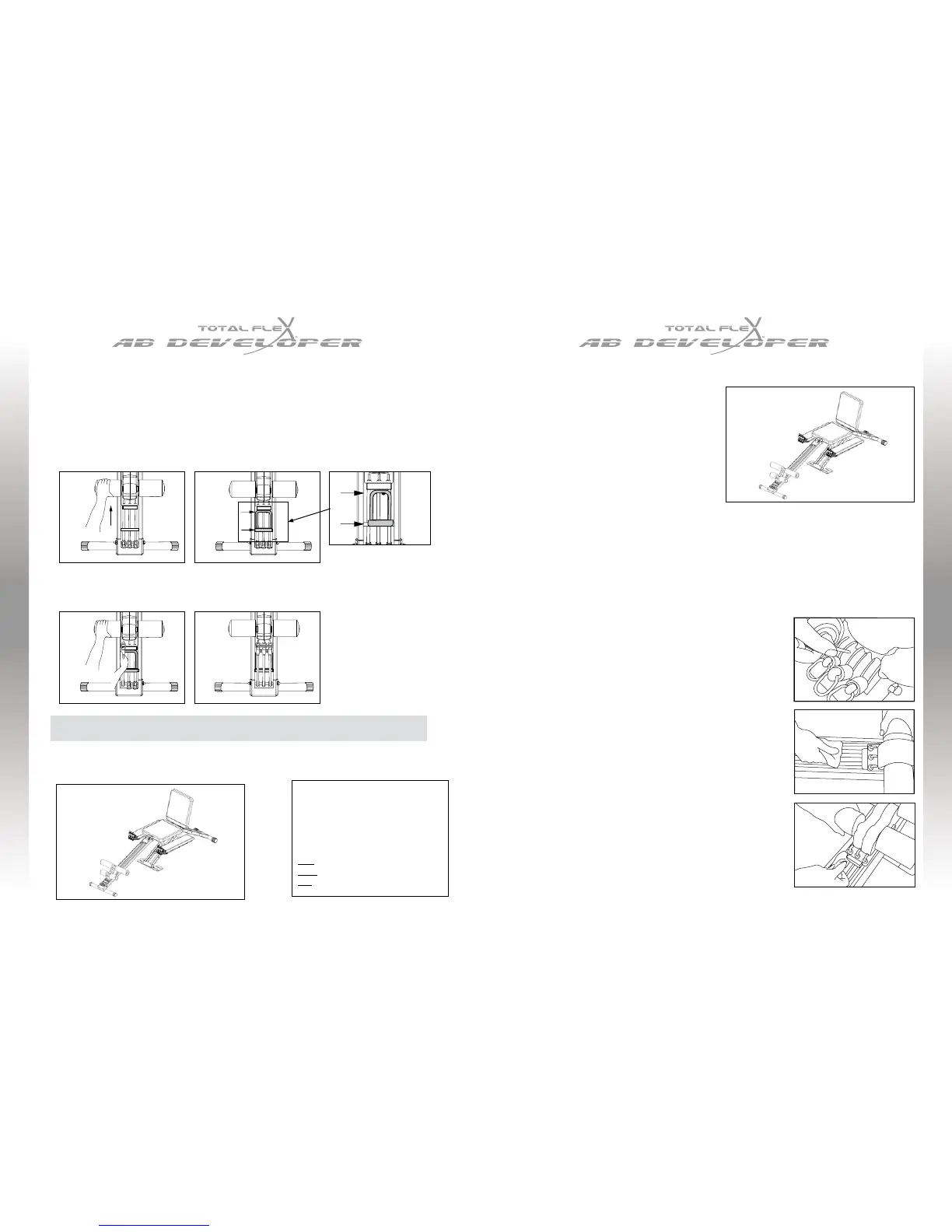 the Carriage (with Foam Rollers) is moved closer to the Seat, enabling you to hook your heels over the