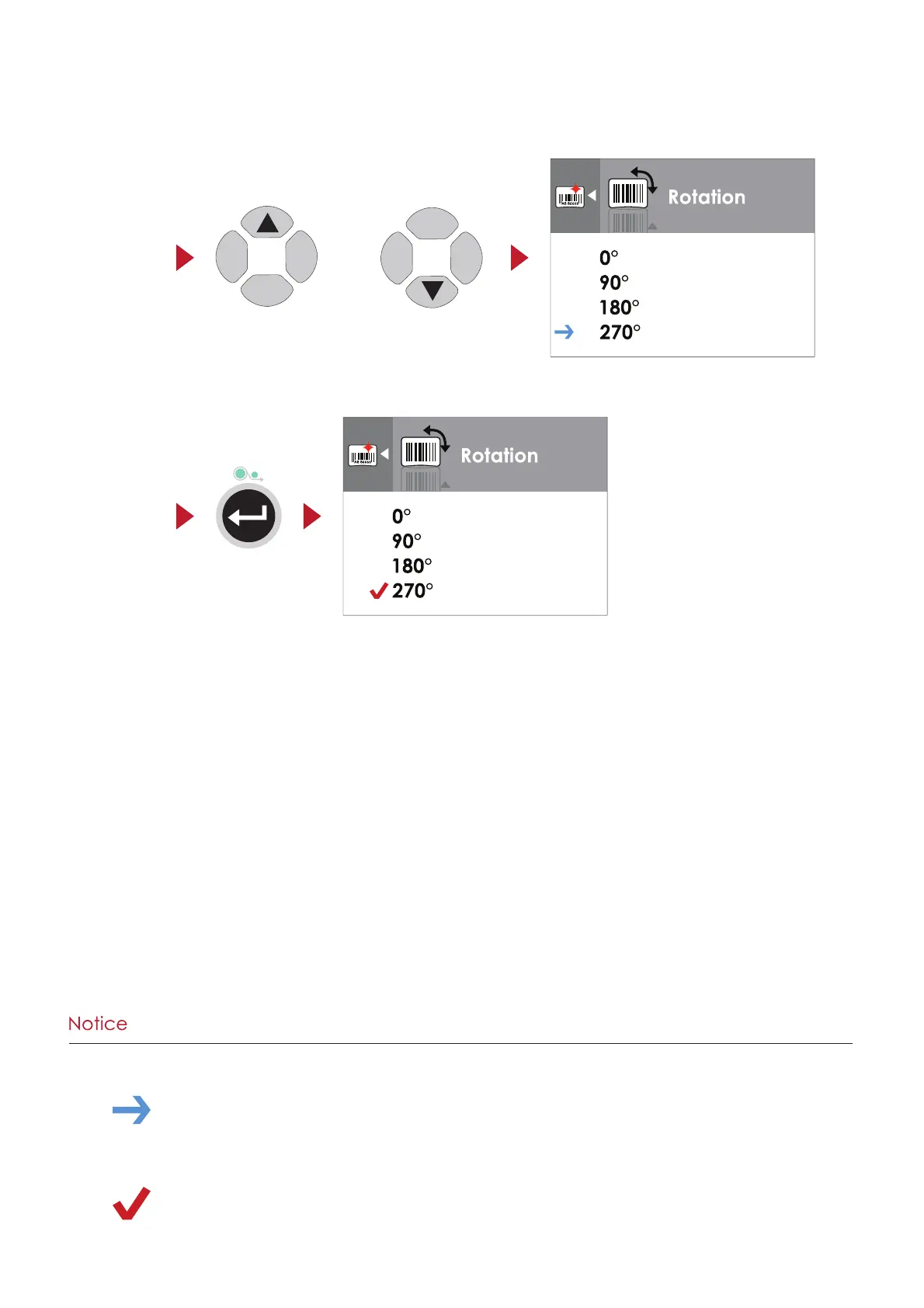 Press the FEED button to apply the value you just selected, and a red tick will appear next to the value.