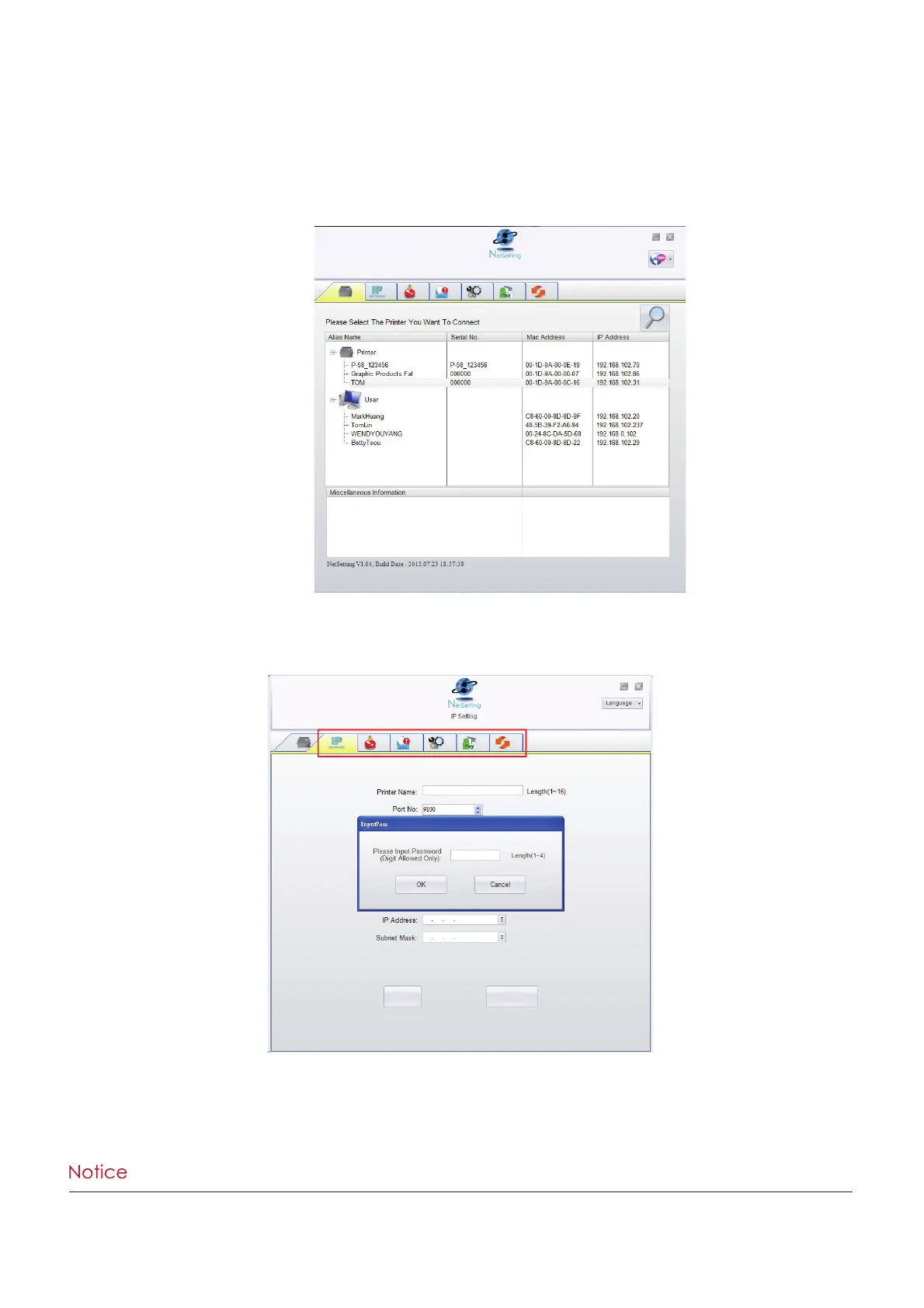 Click on the magnifying glass icon to search your network for Tharo Ethernet printers.