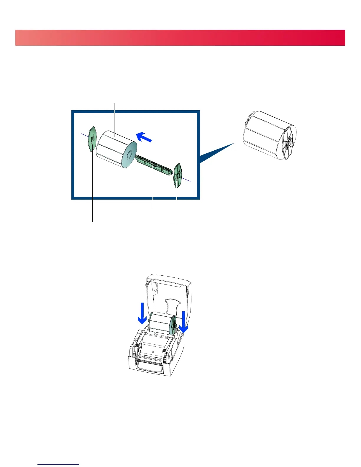 4 Place a roll of label stock on the Label Supply Hub then slide a Label Guide Plate on to each side of the label roll.