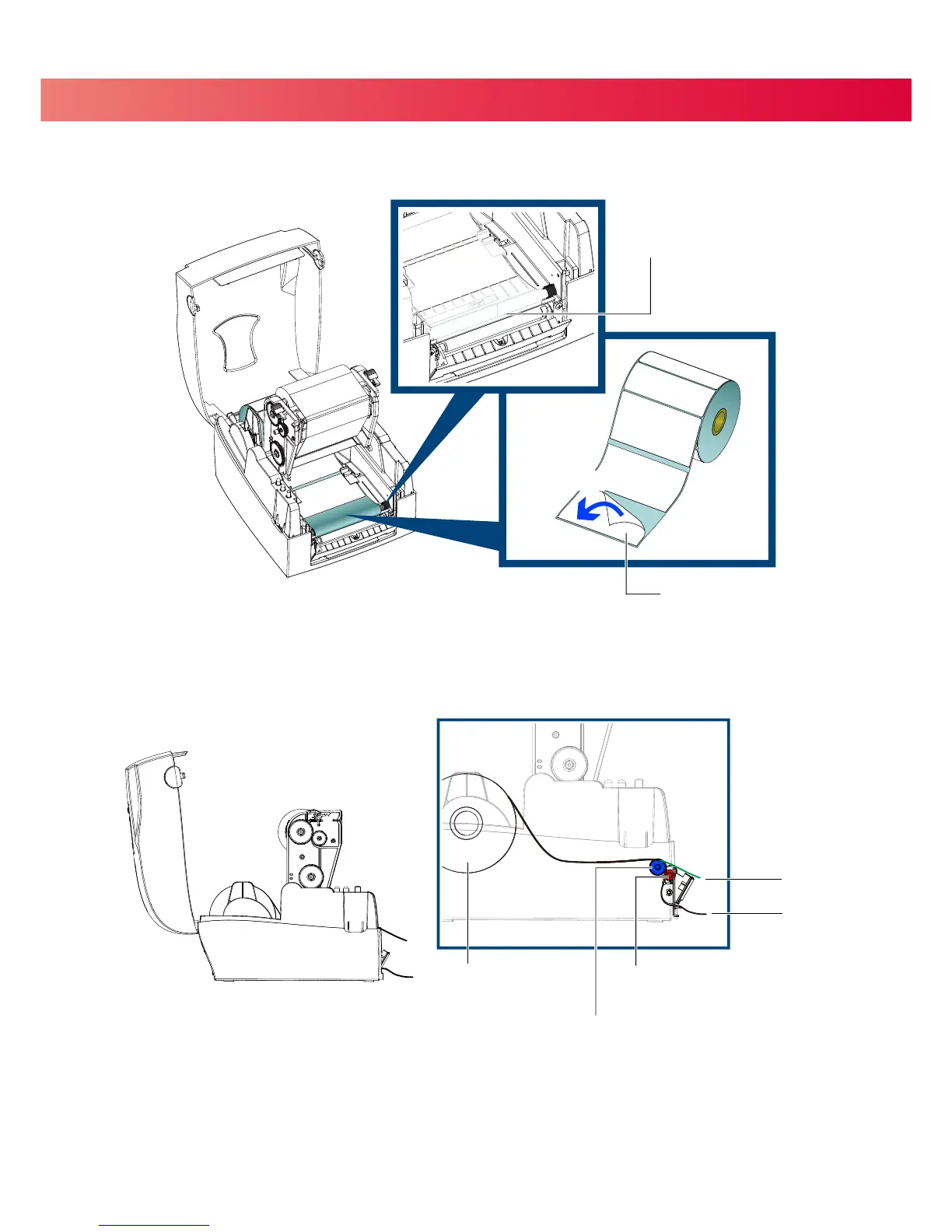Feed the label stock through the Printer as shown in the illustration below.