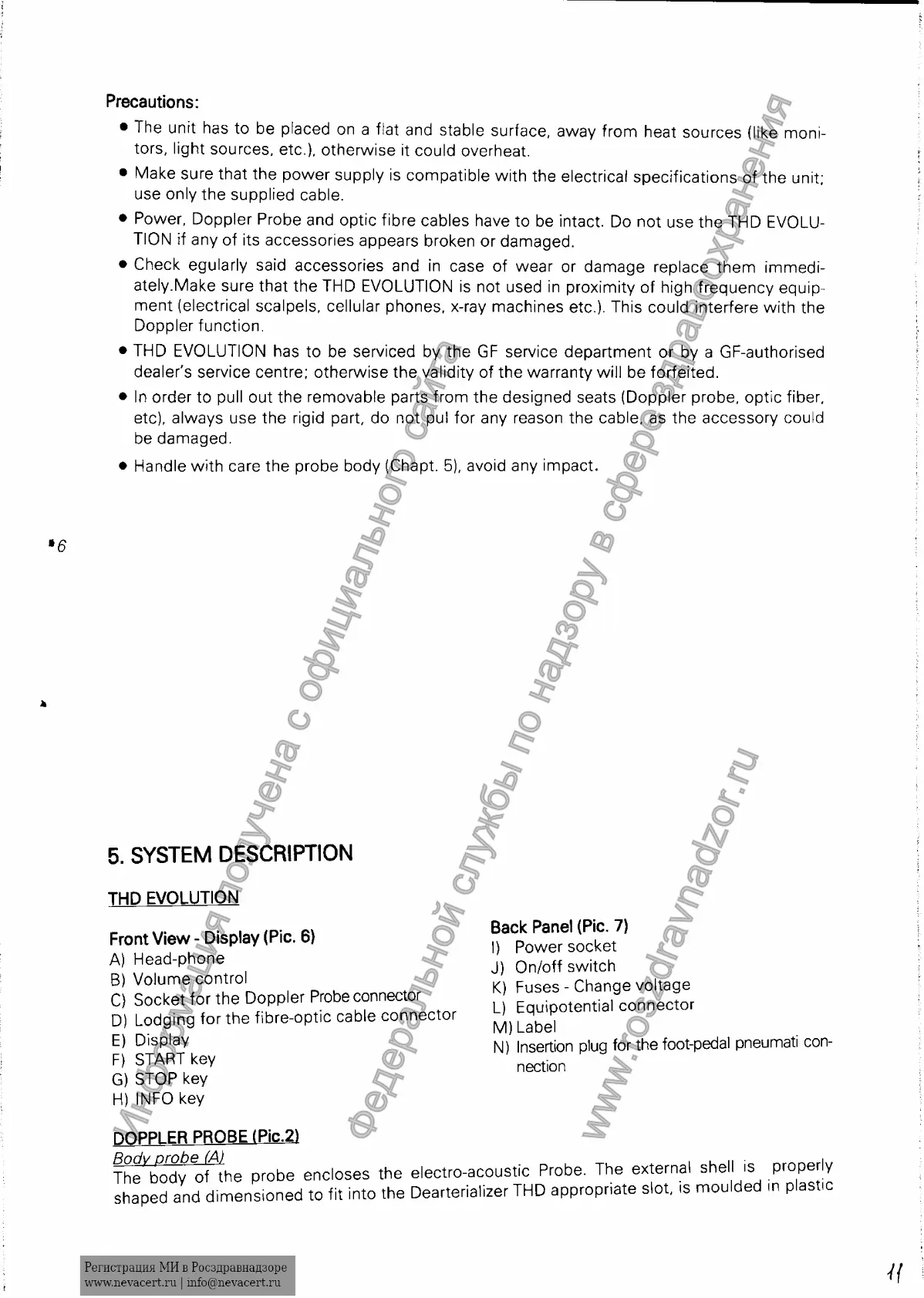 • Power, Doppler Probe and optic fibre cables have to be intact. Do not use the THD EVOLU