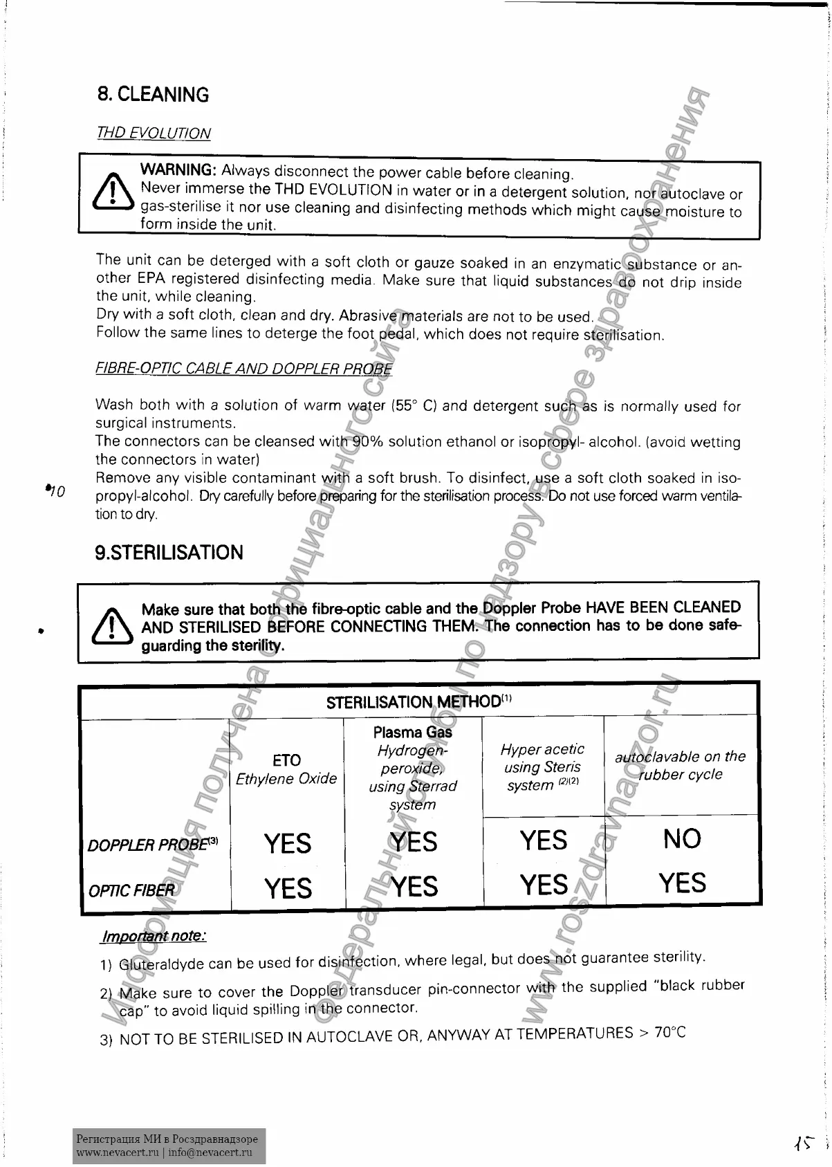 Never immerse the THD EVOLUTION in water or in a detergent solution, nor autoclave or