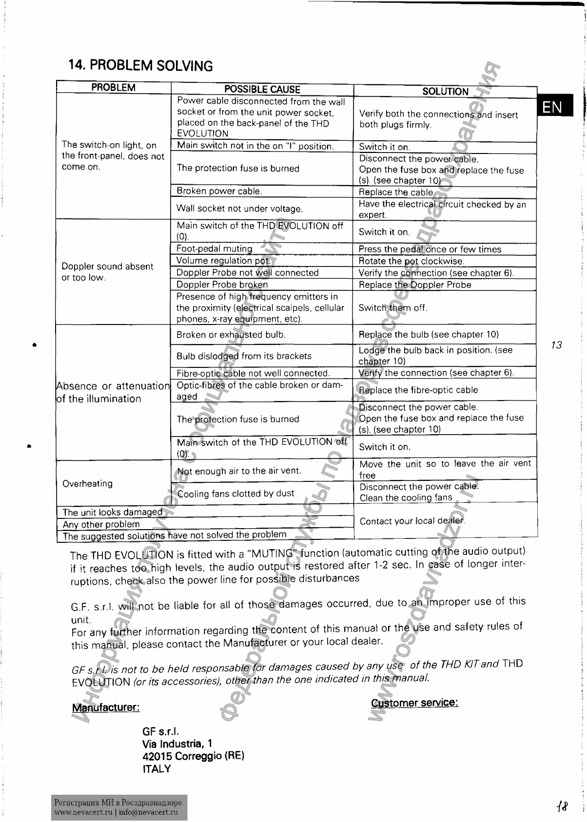 Main sw itch of the THD EVOLUTION off